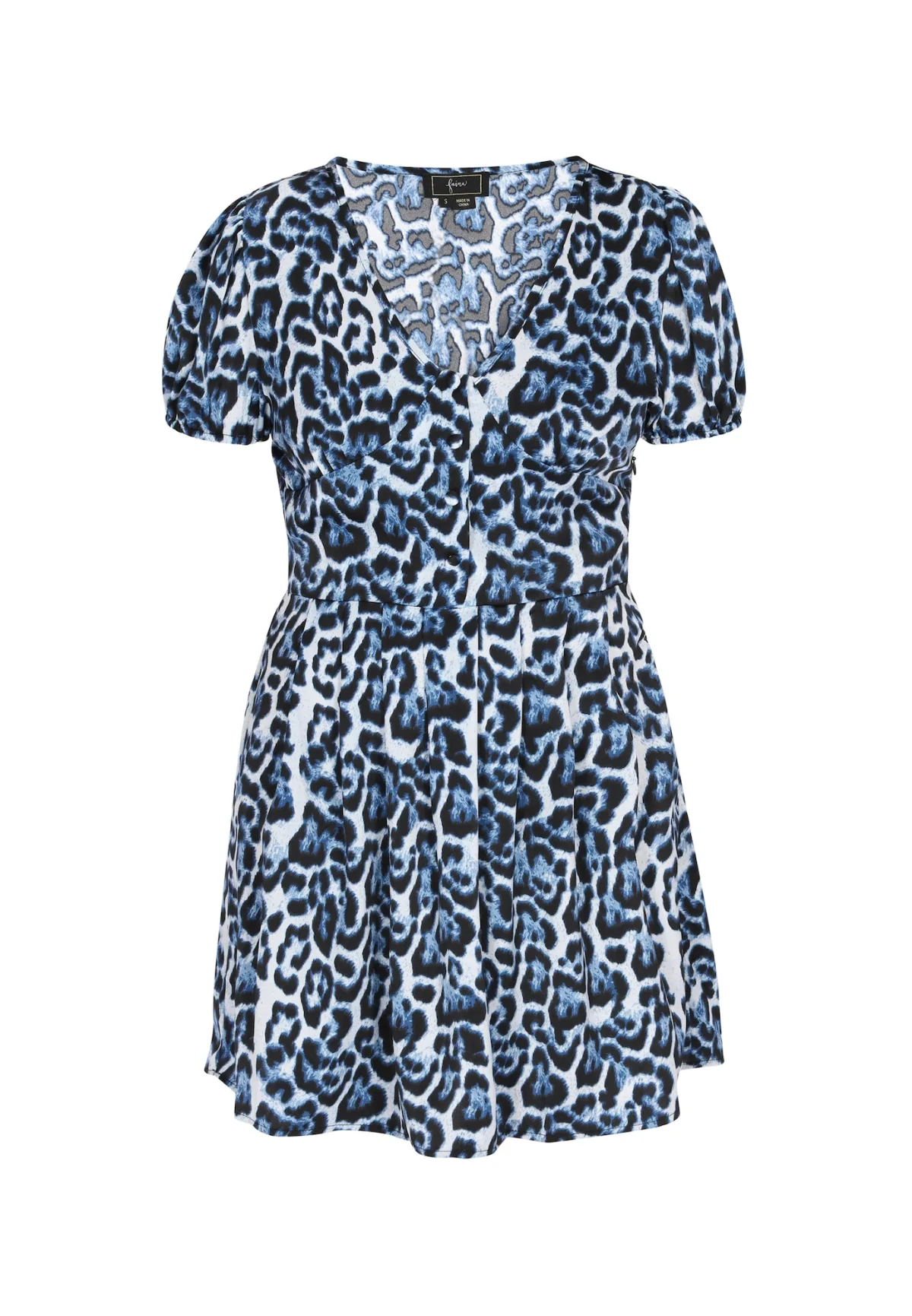 Design: Diepe snit/decolleté, Ritszakken aan de zijkant; Type sluiting: Knoopsluiting; Motief: Dierenprint; Kraag: Zonder kraag; Details: Plooien, Gedrapeerd; Extra's: All-over patroon; Lengte: Kort/mini; Snit: Getailleerd; Pasvorm: Normale pasvorm; Armlengte: Kwartmouw