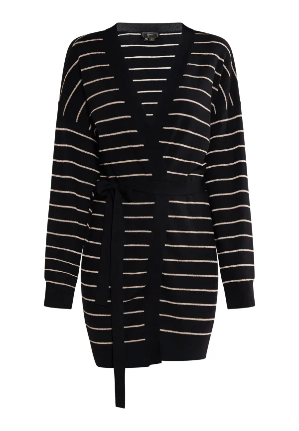 Dit knuffelzachte vest van faina maakt indruk door zijn kleuren en bijzonder zachte breikwaliteit. De casual snit en de open vorm geven het een sportieve touch die vakkundig in evenwicht wordt gebracht door het goudkleurige glittergaren dat in het strepenpatroon is verwerkt. Dankzij het koord in de taille kunt u het vest desgewenst wat strakker dragen.