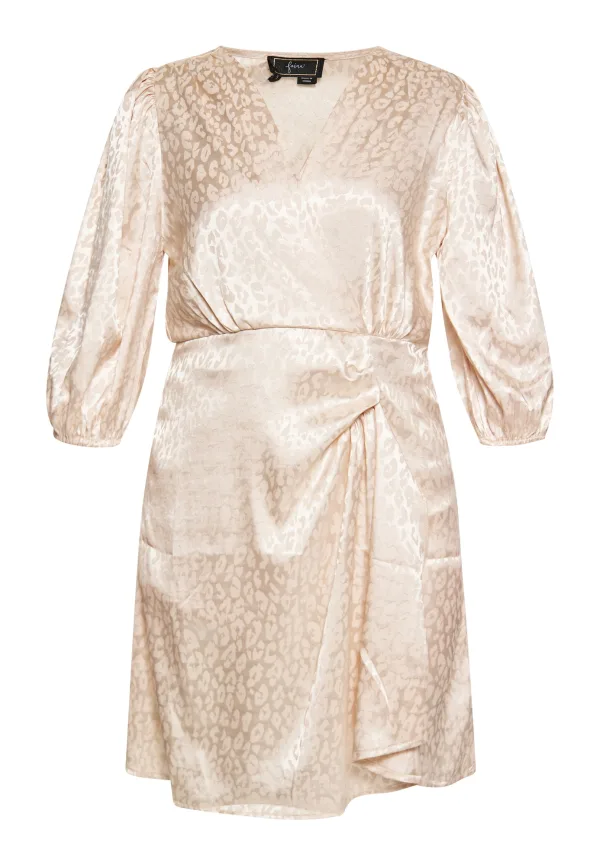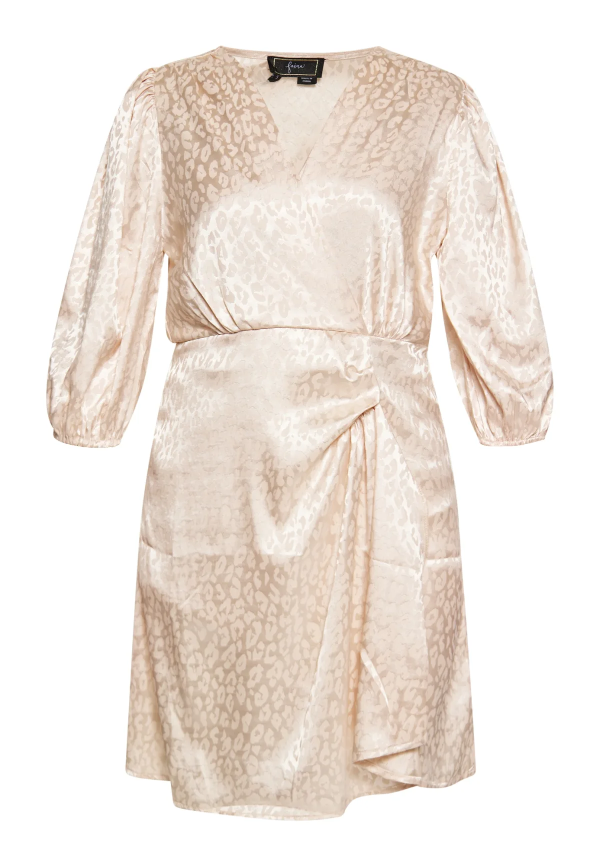 Maak kennis met de stijlvolle leo jacquard wikkeljurk, die verfijning uitstraalt. Deze knielange jurk heeft een opvallend dierenpatroon, een fladderende V-halslijn en elegante 3/4 mouwen. De mini-jurk accentueert de taille, waardoor een gedrapeerd effect ontstaat, wat bijdraagt aan de charme. Met zijn losse pasvorm is deze jurk perfect voor zowel casual uitjes als semi-formele gelegenheden. Het consistente gestructureerde en glanzende patroon geeft het een unieke charme waardoor het opvalt. Dit product maakt deel uit van de Animal Pattern Collection Jurk