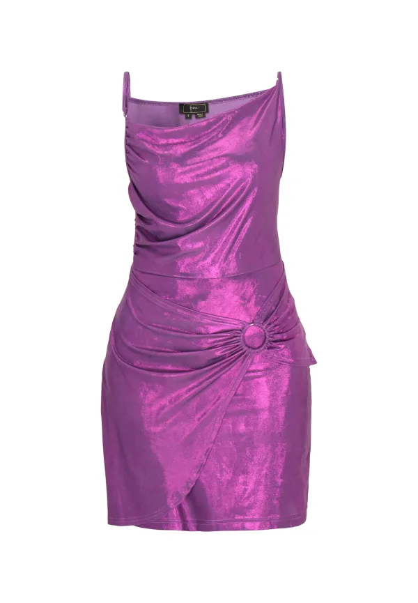 Design: Gevoerde zoom/rand, Wikkel-look; Materiaal: Jersey; Halstype: Watervalhals; Motief: Effen; Soort bandjes: Spaghettibandjes; Details: Gedrapeerd; Extra's: Glinsterend, Verstelbare bandjes; Lengte: Kort/mini; Snit: Figuur omarmend; Pasvorm: Slanke pasvorm; Armlengte: Mouwloos