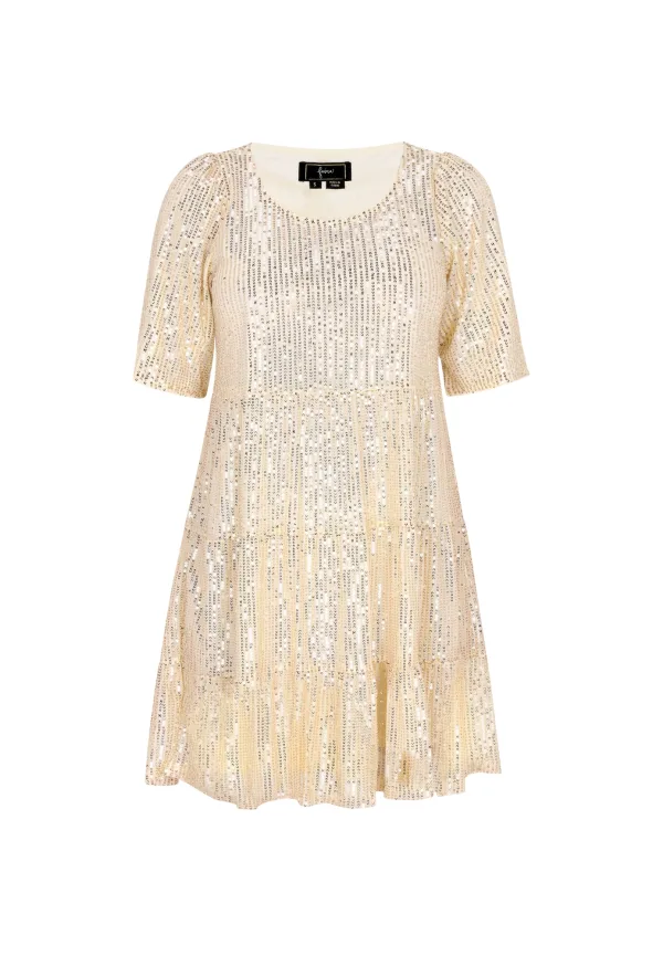 Design: Gevoerde zoom/rand, Met onderjurk; Type sluiting: Slip; Halstype: Ronde hals; Motief: Effen; Details: Pailletten, Ruches; Extra's: Glinsterend, Met textuur; Lengte: Kort/mini; Snit: Uitlopend; Pasvorm: Normale pasvorm; Armlengte: Kwartmouw