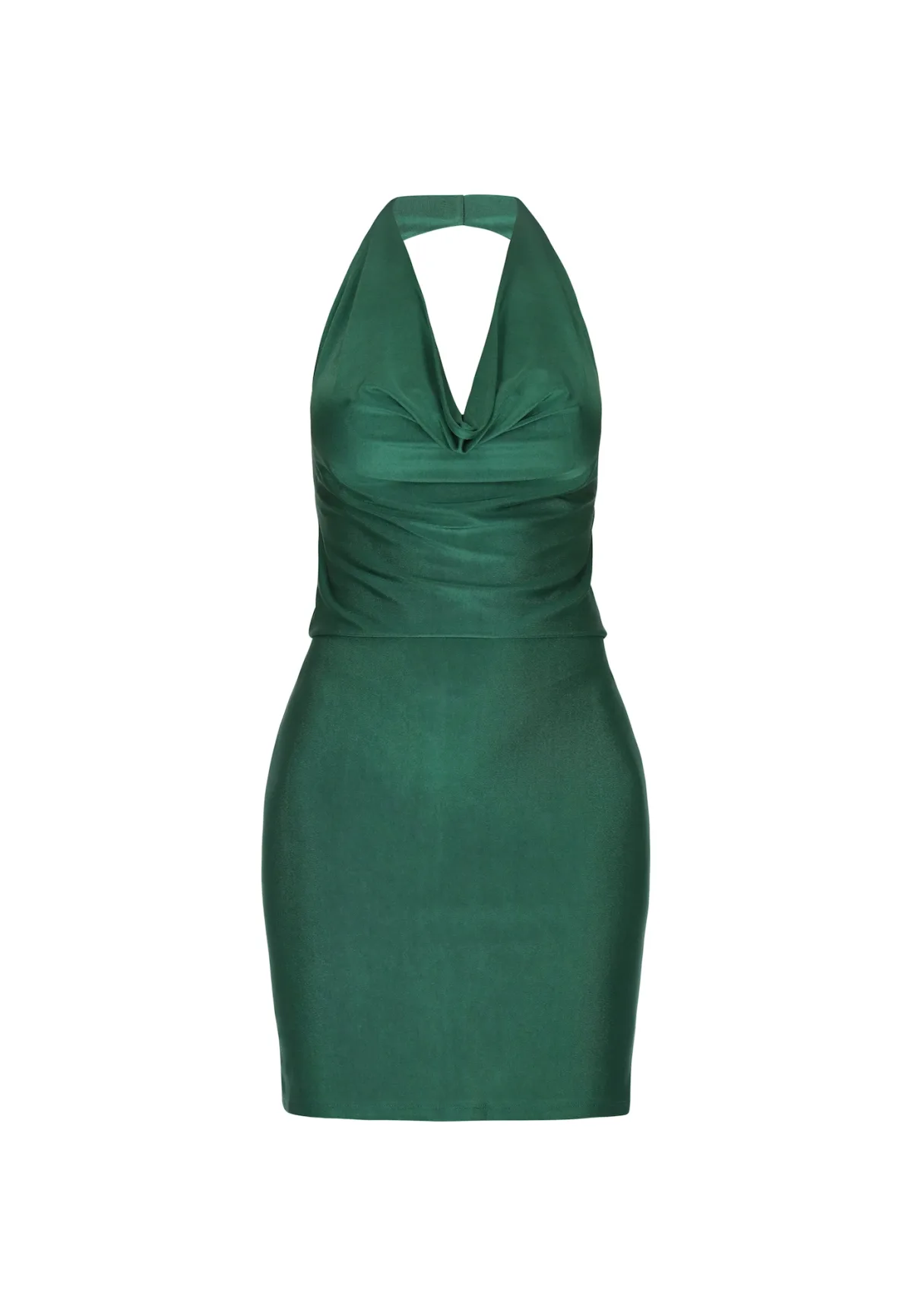 Design: Gevoerde zoom/rand; Type sluiting: Slip; Materiaal: Satijn; Halstype: Watervalhals; Motief: Effen; Soort bandjes: Haltermodel; Details: Gedrapeerd, Backless; Extra's: Op staal naden; Lengte: Kort/mini; Snit: Figuur omarmend; Pasvorm: Slanke pasvorm; Armlengte: Mouwloos
