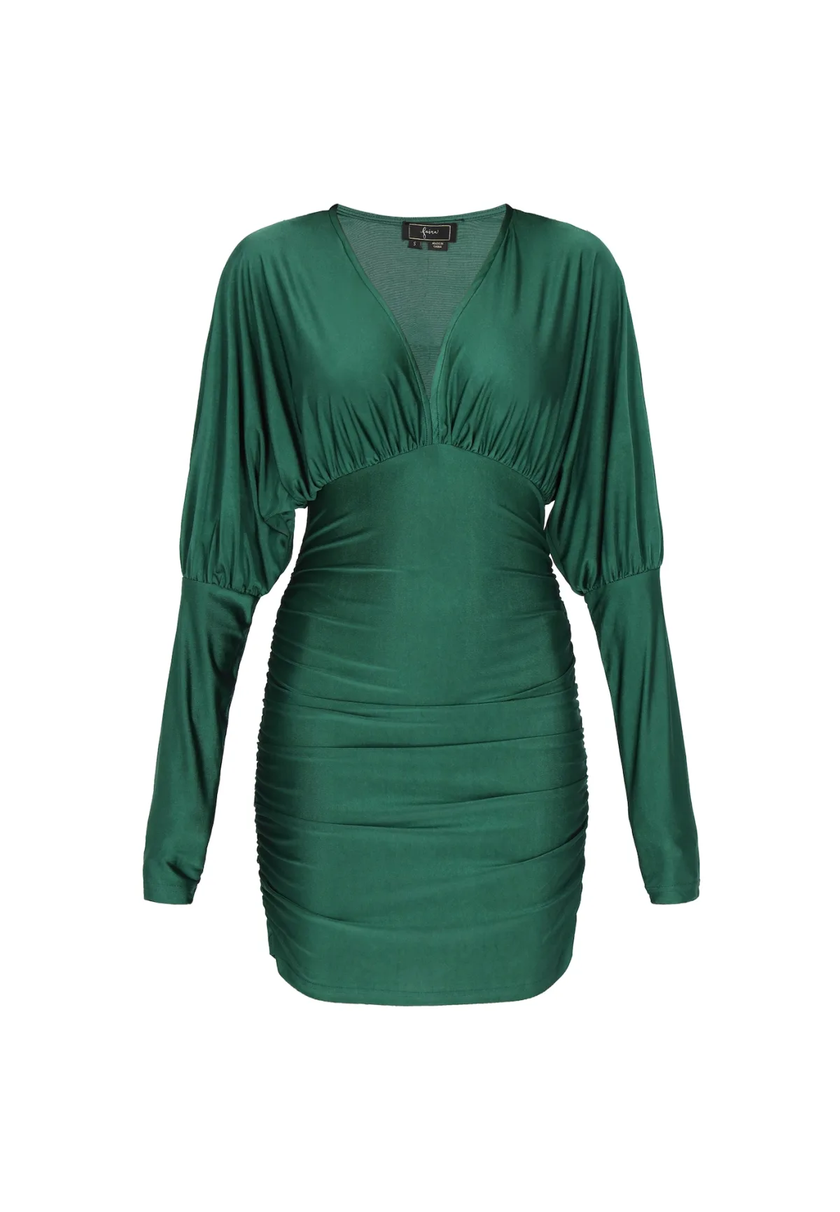 Design: Gevoerde zoom/rand; Type sluiting: Slip; Halstype: V-hals; Motief: Effen; Details: Gedrapeerd; Extra's: Op staal naden; Lengte: Kort/mini; Snit: Figuur omarmend; Pasvorm: Slanke pasvorm; Armlengte: Lange mouw