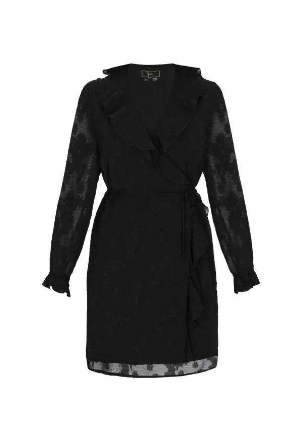 Design: Om te knopen/binden; Materiaal: Chiffon; Halstype: Wikkeltop; Motief: Effen; Details: Volant, Wikkel design; Extra's: Lichte stof; Lengte: Kort/mini; Snit: Getailleerd; Pasvorm: Normale pasvorm; Armlengte: Lange mouw