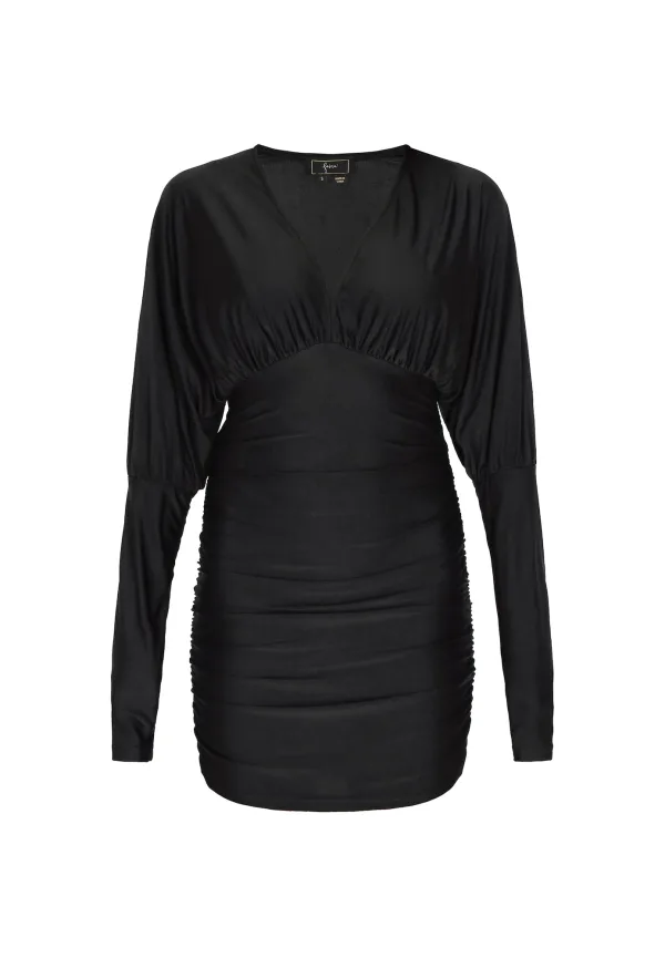 Design: Gevoerde zoom/rand; Type sluiting: Slip; Halstype: V-hals; Motief: Effen; Details: Gedrapeerd; Extra's: Op staal naden; Lengte: Kort/mini; Snit: Figuur omarmend; Pasvorm: Slanke pasvorm; Armlengte: Lange mouw