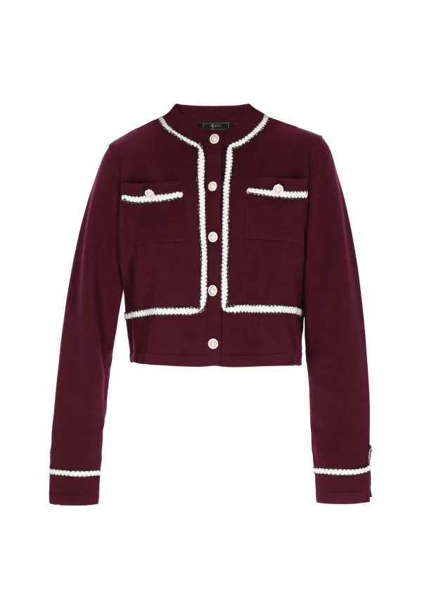 faina Gebreid vest bourgogne / zwart / wit Prijzen