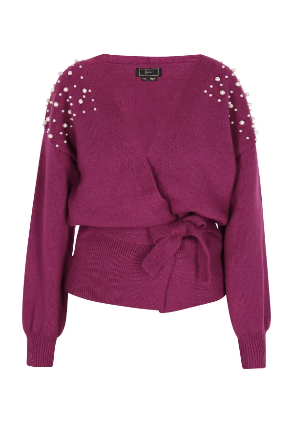 Design: Pofmouwen; Halstype: V-hals; Details: Parels, Wikkel design; Pasvorm: Normale pasvorm; Armlengte: Lange mouw; Lengte: Normale lengte
