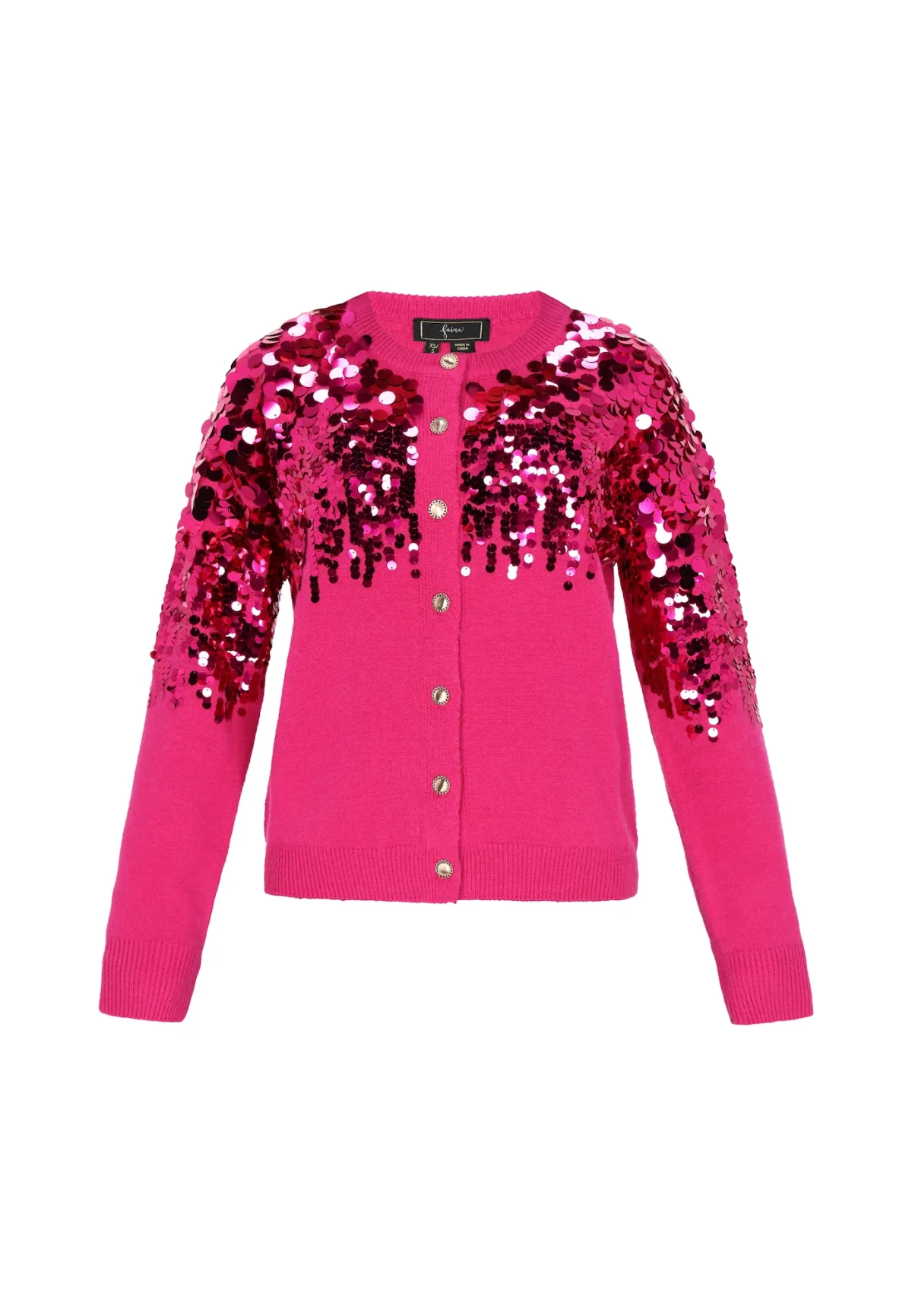Design: Knop placket; Type sluiting: Knoopsluiting; Materiaal: Knitwear; Halstype: Ronde hals; Details: Pailletten; Extra's: Applicaties; Pasvorm: Normale pasvorm; Armlengte: Lange mouw; Lengte: Normale lengte