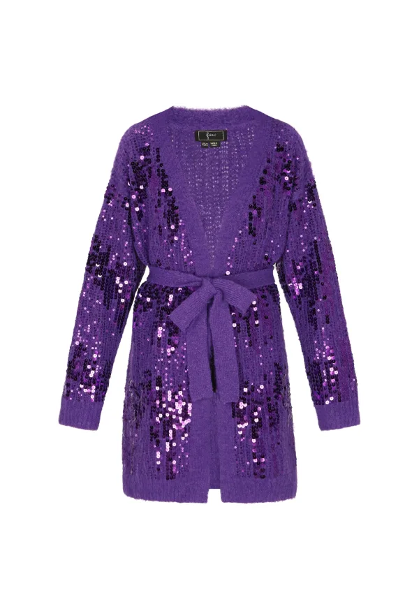 Design: Geribd ceintuurtje, Geribbeld gebreid, Met riem; Materiaal: Knitwear; Details: Pailletten; Extra's: Glitterend, Voelt zacht aan; Pasvorm: Normale pasvorm; Armlengte: Lange mouw; Lengte: Lange pasvorm