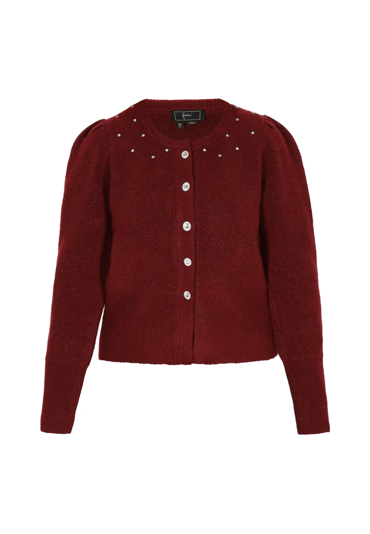 Design: Gevoerde zoom/rand, Knop placket, Pofmouwen; Type sluiting: Knoopsluiting; Materiaal: Knitwear; Halstype: Ronde hals; Motief: Effen; Details: Parels; Extra’s: Op staal naden; Pasvorm: Normale pasvorm; Armlengte: Lange mouw; Lengte: Normale lengte