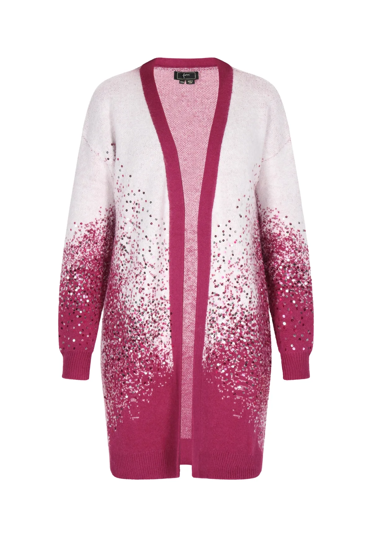 Omarm elegantie met dit lange vest, een winter must-have die comfort en stijl combineert. Dit gebreide item met V-hals en lange mouwen heeft een ombre-patroon versierd met bling pailletten voor extra flair. Het open ontwerp zorgt voor een relaxte pasvorm, waardoor het perfect is om te dragen als laagje tijdens de feestelijke kerstperiode. Vest