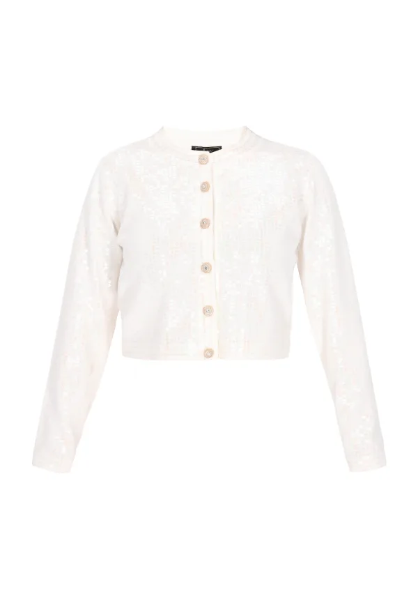 Design: Geribbelde kraag, Geribd ceintuurtje; Type sluiting: Knoopsluiting; Materiaal: Knitwear; Halstype: Ronde hals; Motief: Effen; Details: Pailletten; Extra's: Fully fashioned, Met textuur; Pasvorm: Normale pasvorm; Armlengte: Lange mouw; Lengte: Korte pasvorm