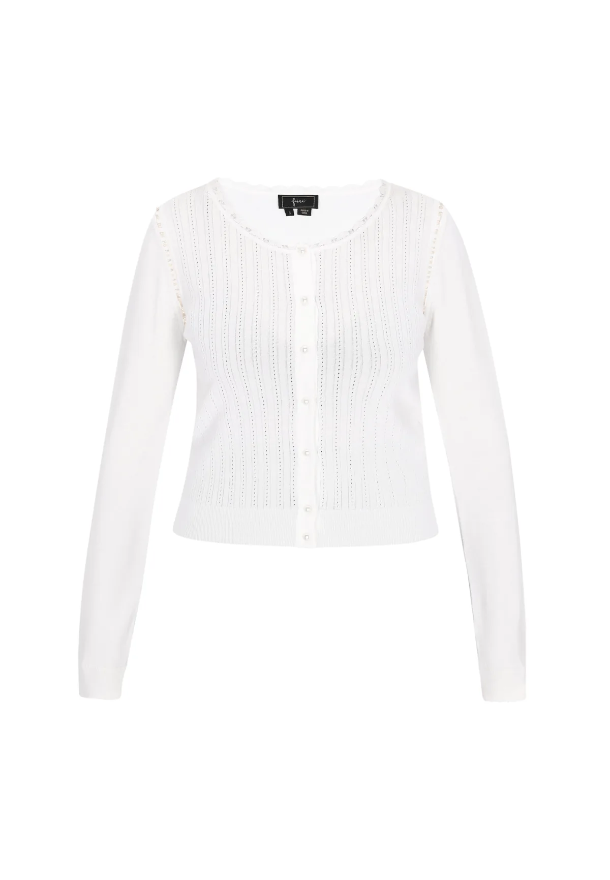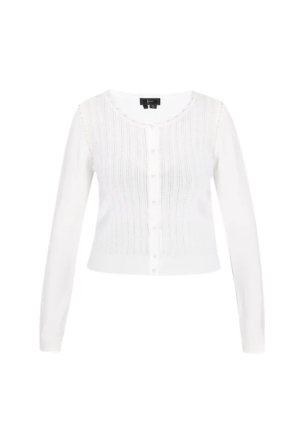 Design: Knop placket, Geribd ceintuurtje; Type sluiting: Knoopsluiting; Materiaal: Knitwear; Halstype: Ronde hals; Motief: Effen; Details: Mesh, Parels; Extra's: Fully fashioned, Met textuur, Voelt zacht aan; Pasvorm: Normale pasvorm; Armlengte: Lange mouw; Lengte: Normale lengte