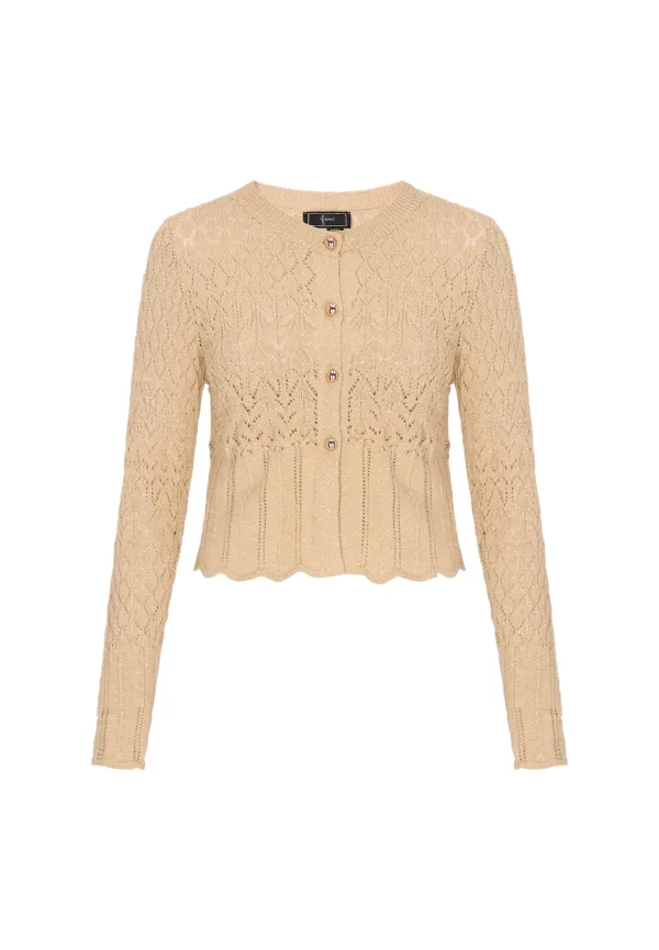 Design: Geribbelde kraag; Type sluiting: Knoopsluiting; Materiaal: Knitwear; Halstype: Ronde hals; Motief: Effen; Details: Mesh; Extra's: Met textuur; Pasvorm: Normale pasvorm; Armlengte: Lange mouw; Lengte: Normale lengte
