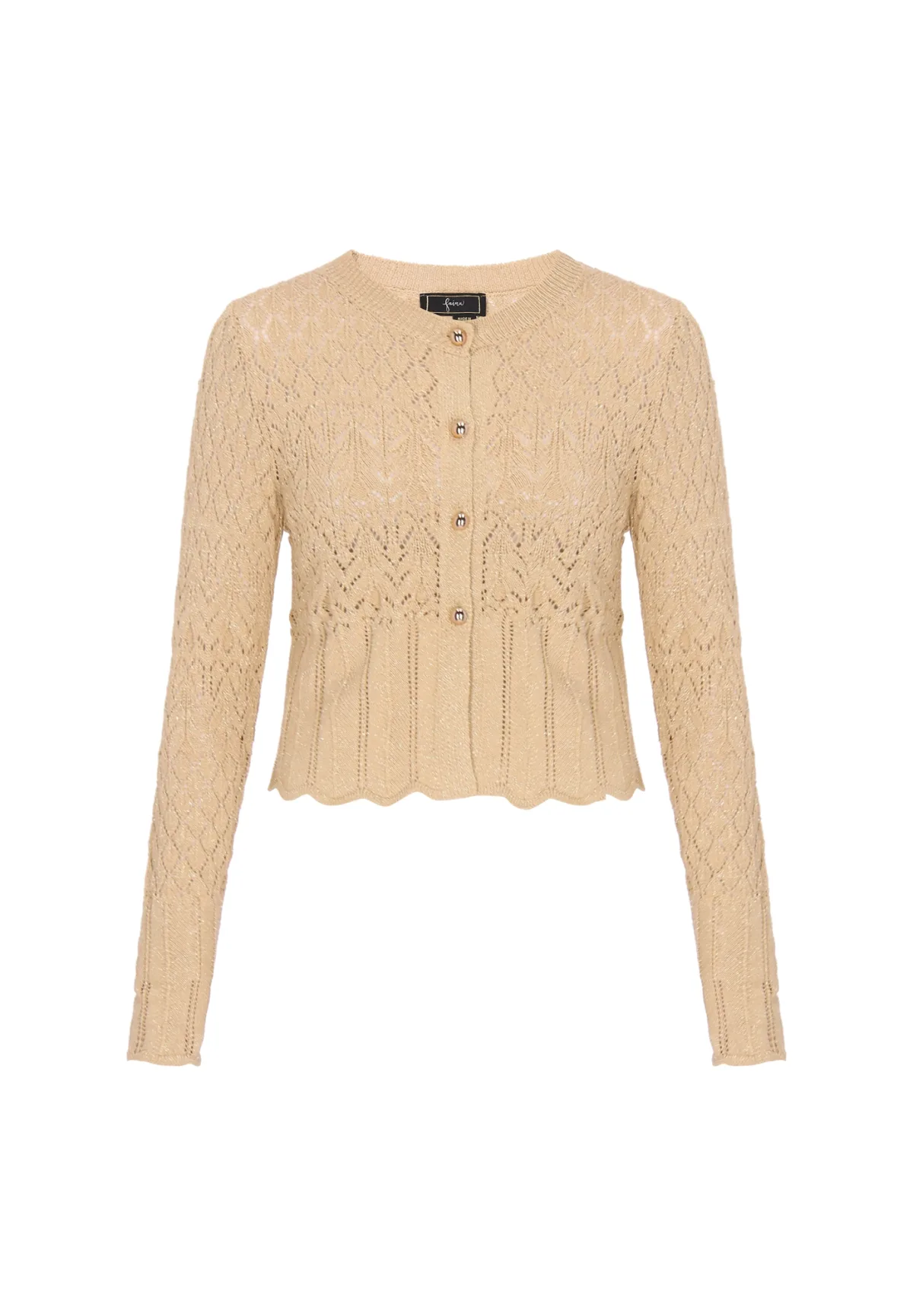 faina Gebreid vest ‘Festive’ beige Prijzen