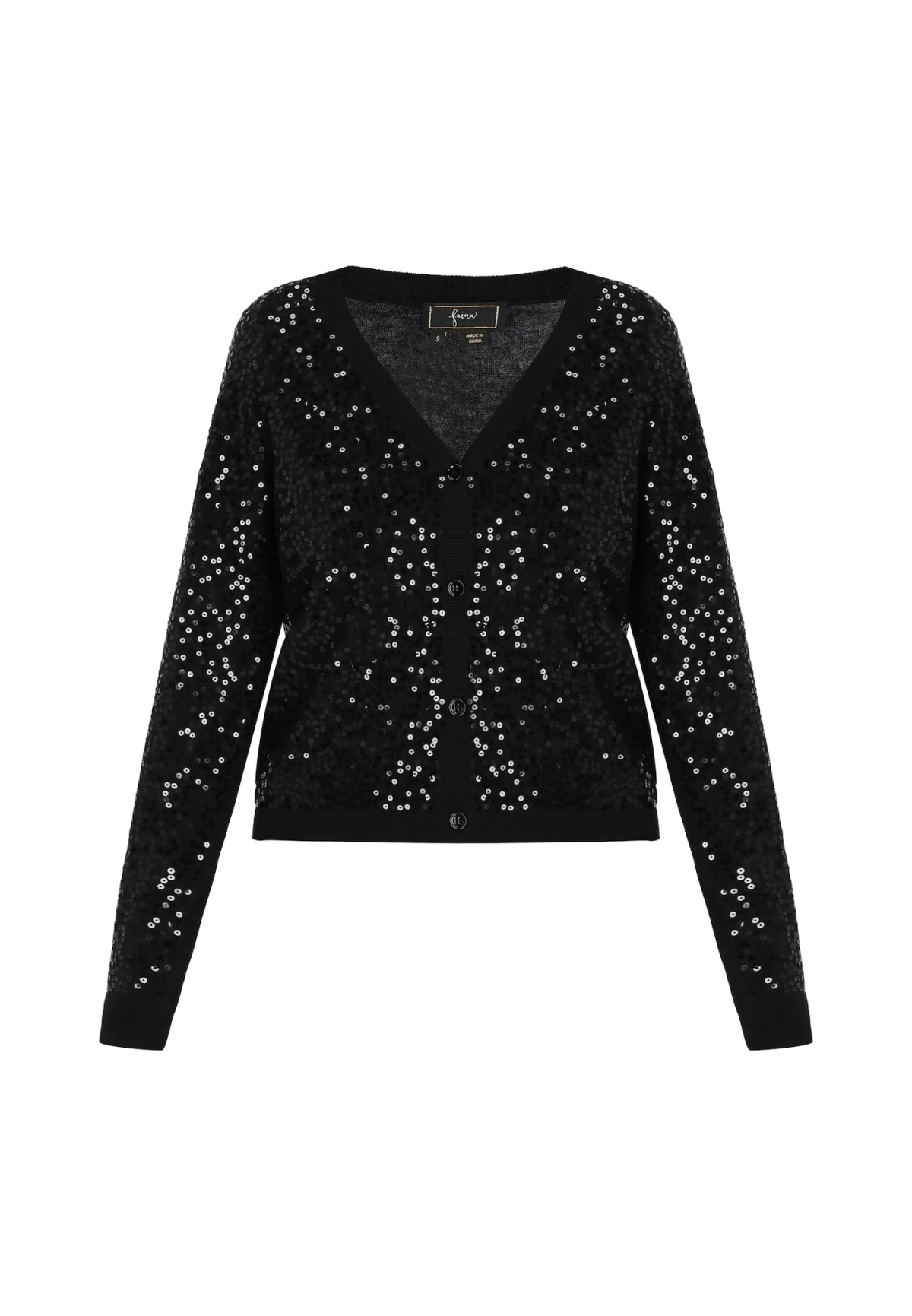 faina Gebreid vest ‘Festive’ zwart Prijzen