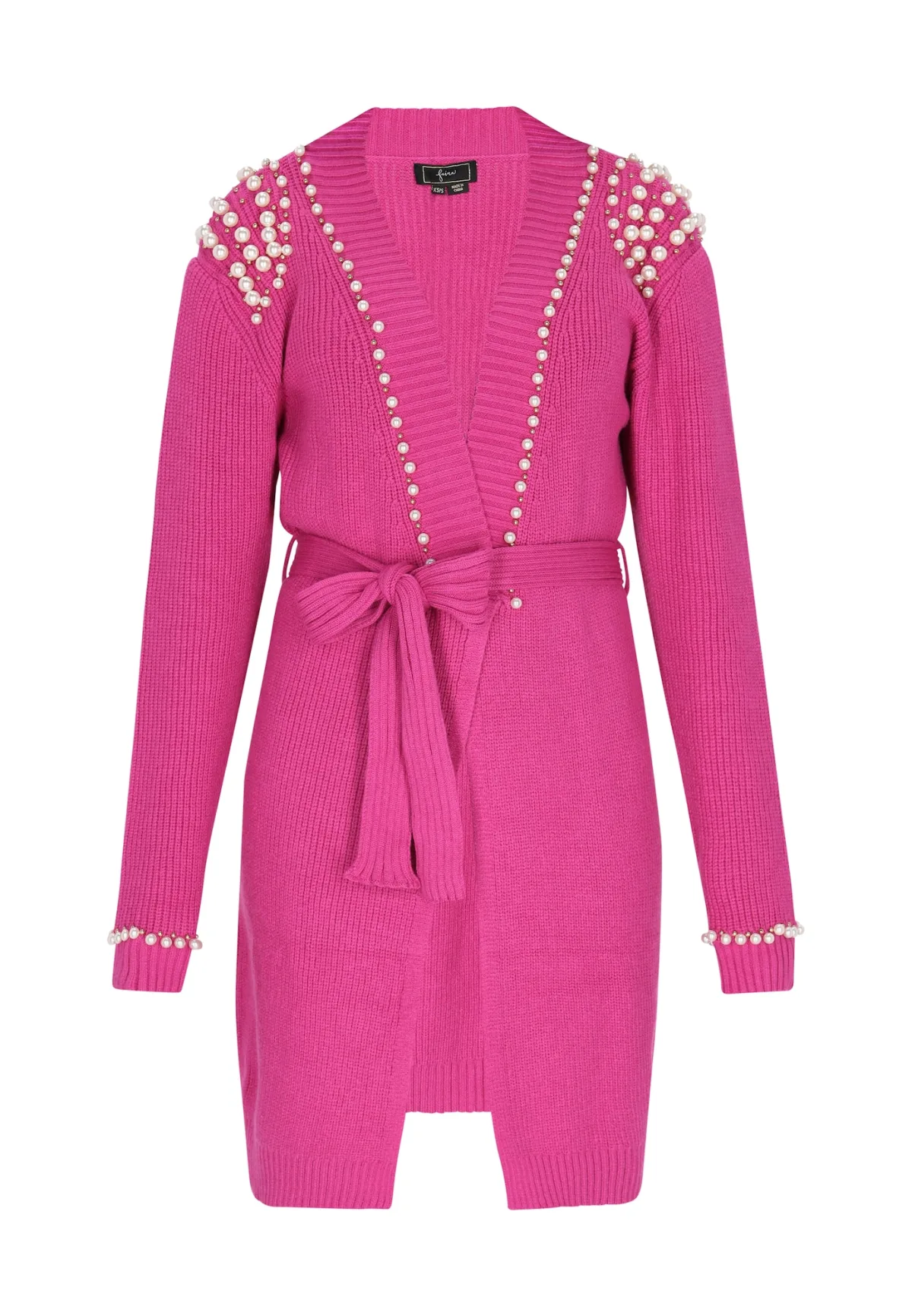 Design: Tailleriem, Zonder sluiting; Materiaal: Knitwear; Motief: Effen; Details: Parels; Extra's: Applicaties, Fully fashioned; Pasvorm: Normale pasvorm; Armlengte: Lange mouw; Lengte: Lange pasvorm