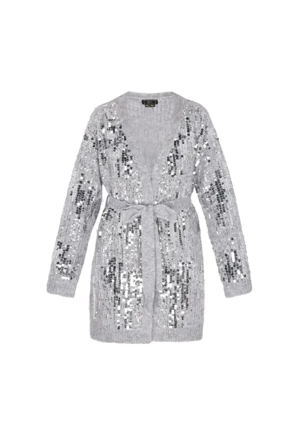 Design: Geribd ceintuurtje, Tailleband; Materiaal: Knitwear; Motief: Effen; Details: Pailletten; Extra's: All-over patroon, Applicaties; Pasvorm: Normale pasvorm; Armlengte: Lange mouw; Lengte: Lange pasvorm