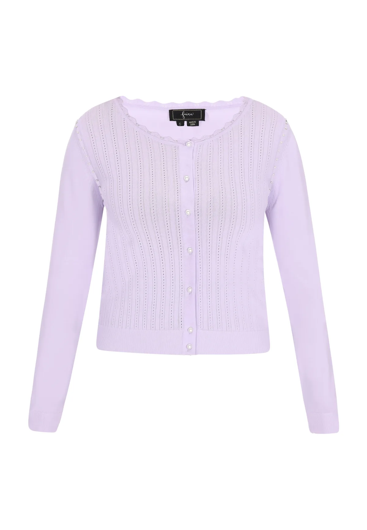 Design: Knop sluiting; Type sluiting: Knoopsluiting; Materiaal: Knitwear; Halstype: Ronde hals; Motief: Effen; Details: Mesh, Parels; Extra’s: Op staal naden; Pasvorm: Normale pasvorm; Armlengte: Lange mouw; Lengte: Normale lengte