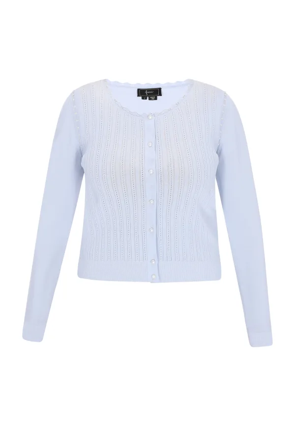 Design: Knop sluiting; Type sluiting: Knoopsluiting; Materiaal: Knitwear; Halstype: Ronde hals; Motief: Effen; Details: Mesh, Parels; Extra's: Op staal naden; Pasvorm: Normale pasvorm; Armlengte: Lange mouw; Lengte: Normale lengte