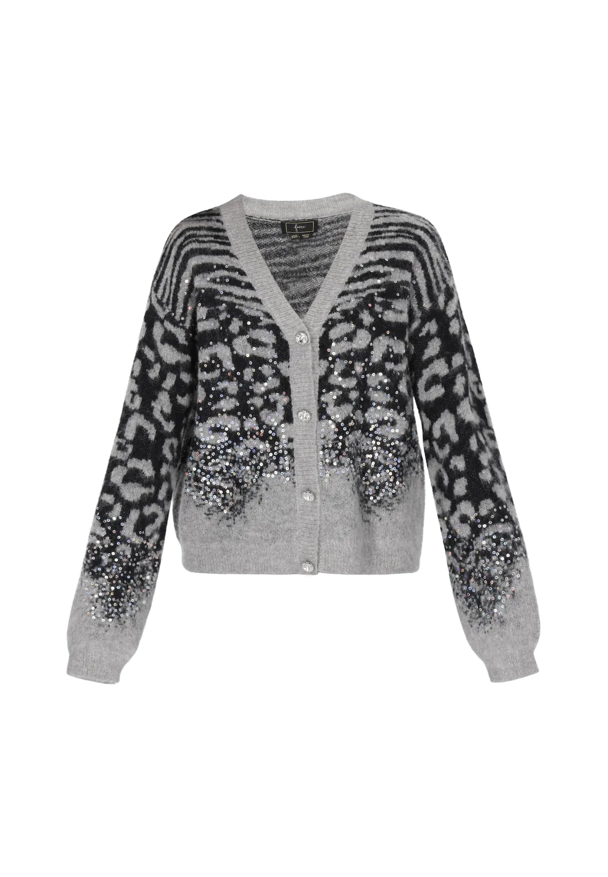 Design: Placket, Geribbelde kraag, Overcut schouder; Type sluiting: Knoopsluiting; Materiaal: Knitwear; Halstype: V-hals; Motief: Dierenprint; Details: Pailletten; Extra's: All-over patroon; Pasvorm: Wijde pasvorm; Armlengte: Lange mouw; Lengte: Normale lengte