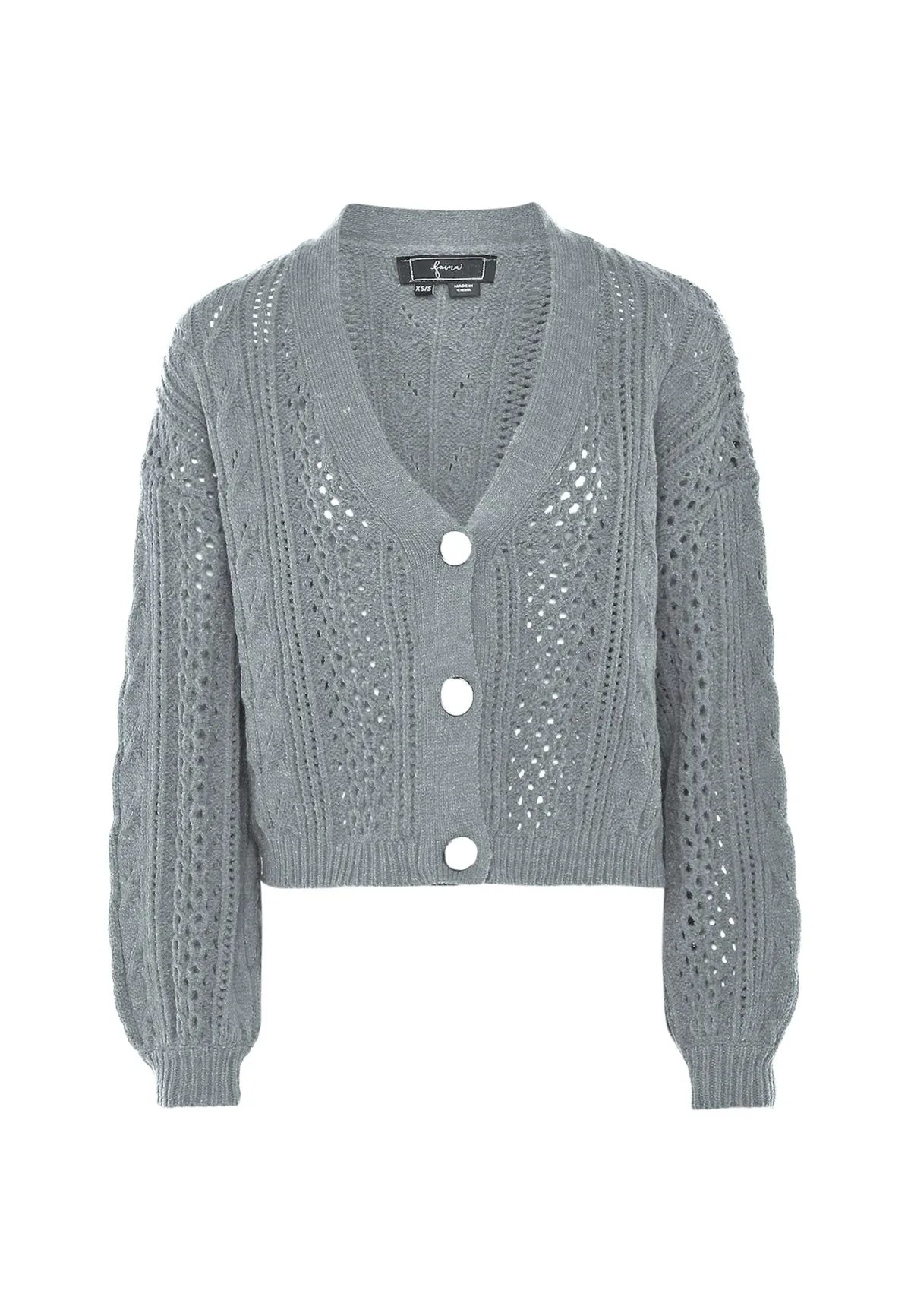 Design: Geribbeld gebreid; Type sluiting: Knoopsluiting; Halstype: V-hals; Motief: Effen; Details: Mesh; Extra's: Op staal naden; Pasvorm: Losse pasvorm; Armlengte: Lange mouw; Lengte: Normale lengte