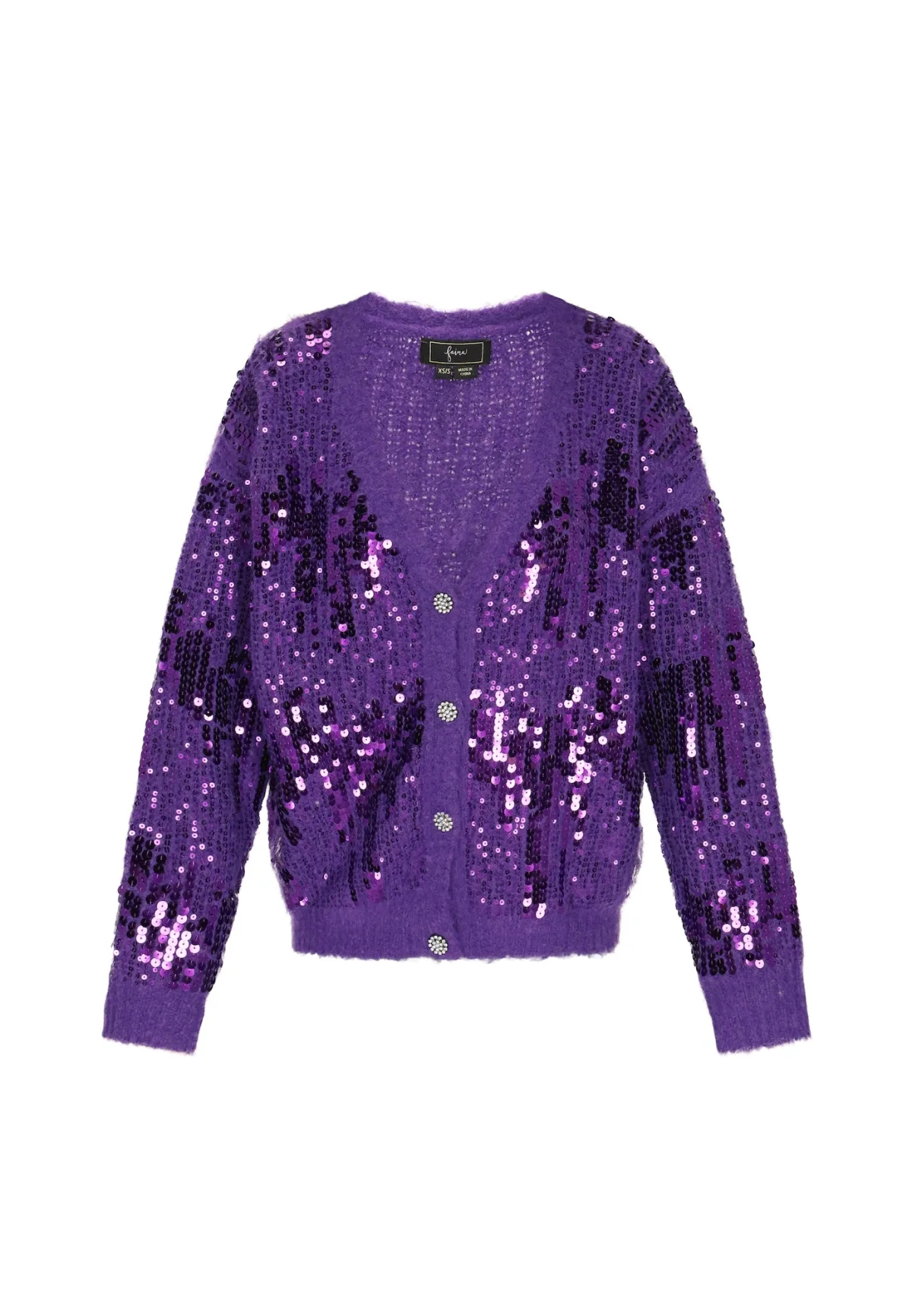 Design: Knop placket; Type sluiting: Knoopsluiting; Materiaal: Knitwear; Halstype: V-hals; Motief: Effen; Details: Pailletten, Sierstenen; Extra's: All-over patroon, Applicaties; Pasvorm: Losse pasvorm; Armlengte: Lange mouw; Lengte: Normale lengte
