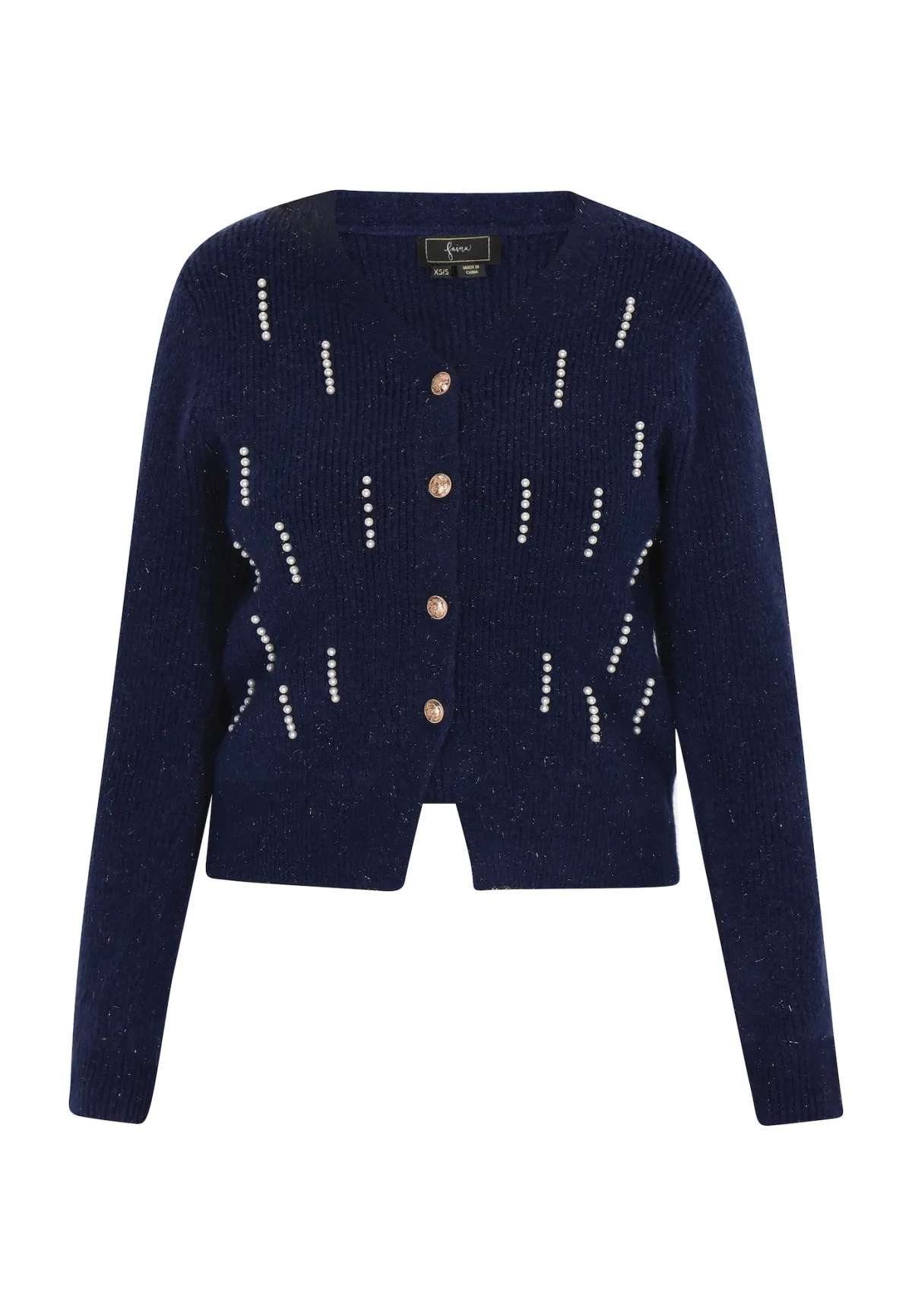 Type sluiting: Knoopsluiting; Materiaal: Knitwear; Halstype: V-hals; Details: Parels; Pasvorm: Normale pasvorm; Armlengte: Lange mouw; Lengte: Normale lengte