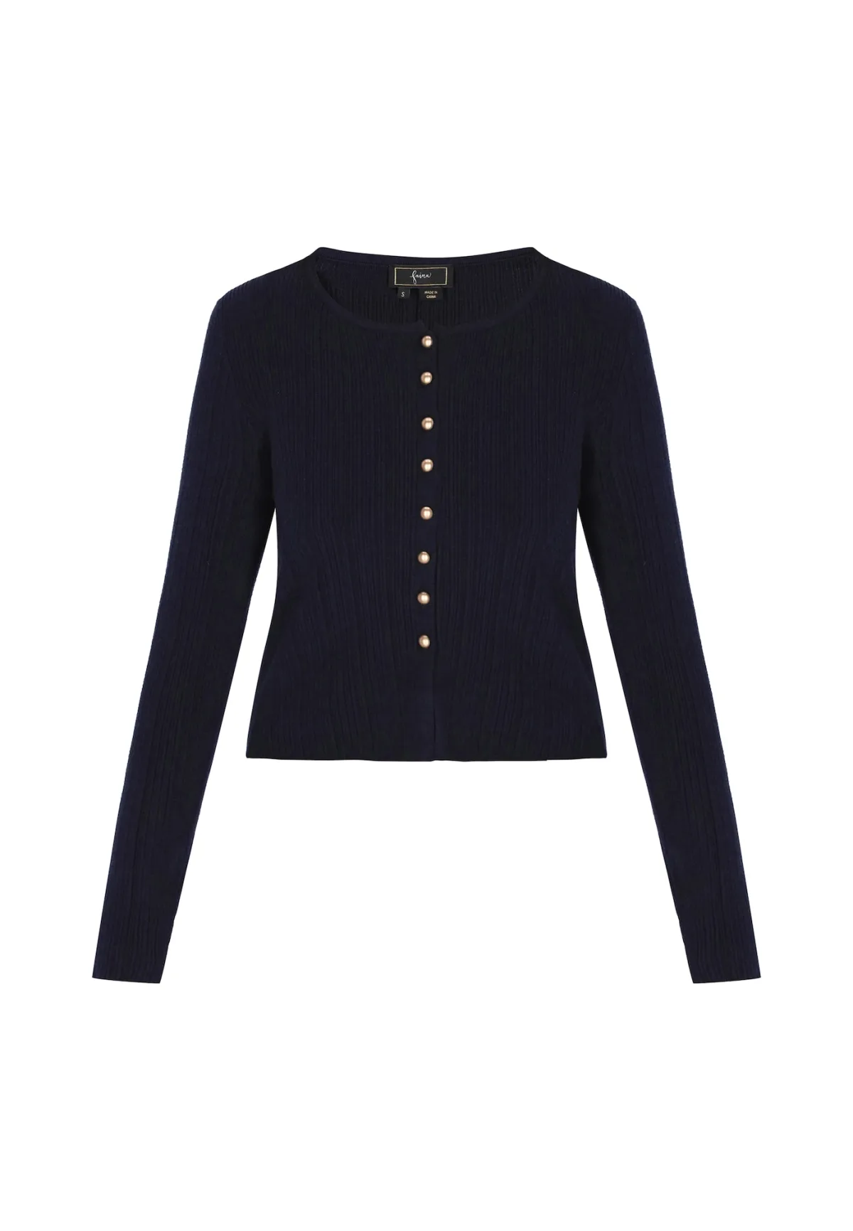 Design: Rechte zoom; Type sluiting: Knoopsluiting; Materiaal: Knitwear; Halstype: Ronde hals; Motief: Effen; Extra's: Met textuur; Pasvorm: Normale pasvorm; Armlengte: Lange mouw; Lengte: Normale lengte