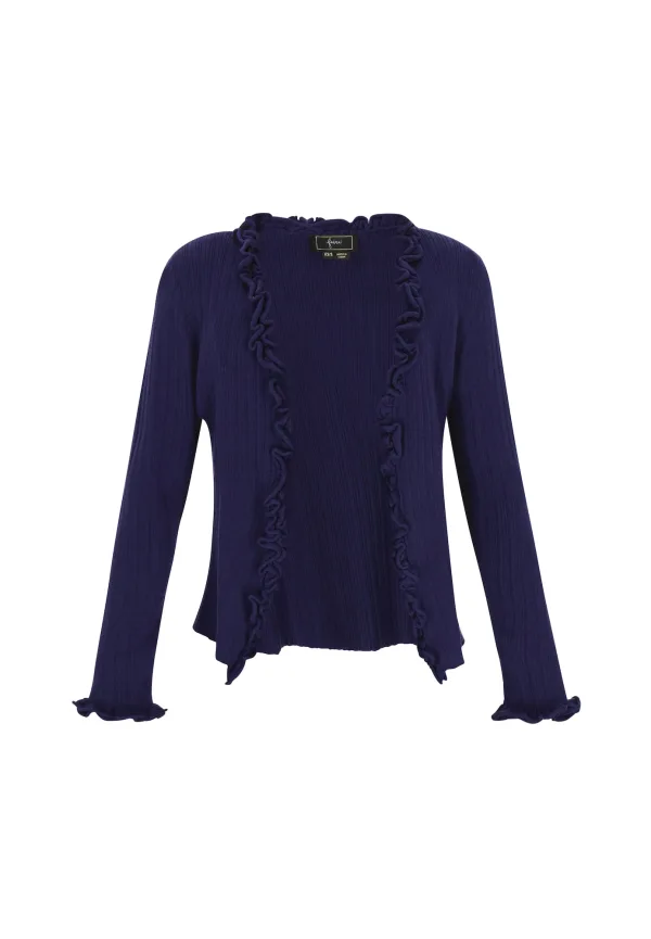 Design: Geribbeld gebreid, Zonder sluiting; Type sluiting: Open; Materiaal: Knitwear; Motief: Effen; Details: Ruches; Extra's: Op staal naden; Pasvorm: Normale pasvorm; Armlengte: Lange mouw; Lengte: Normale lengte