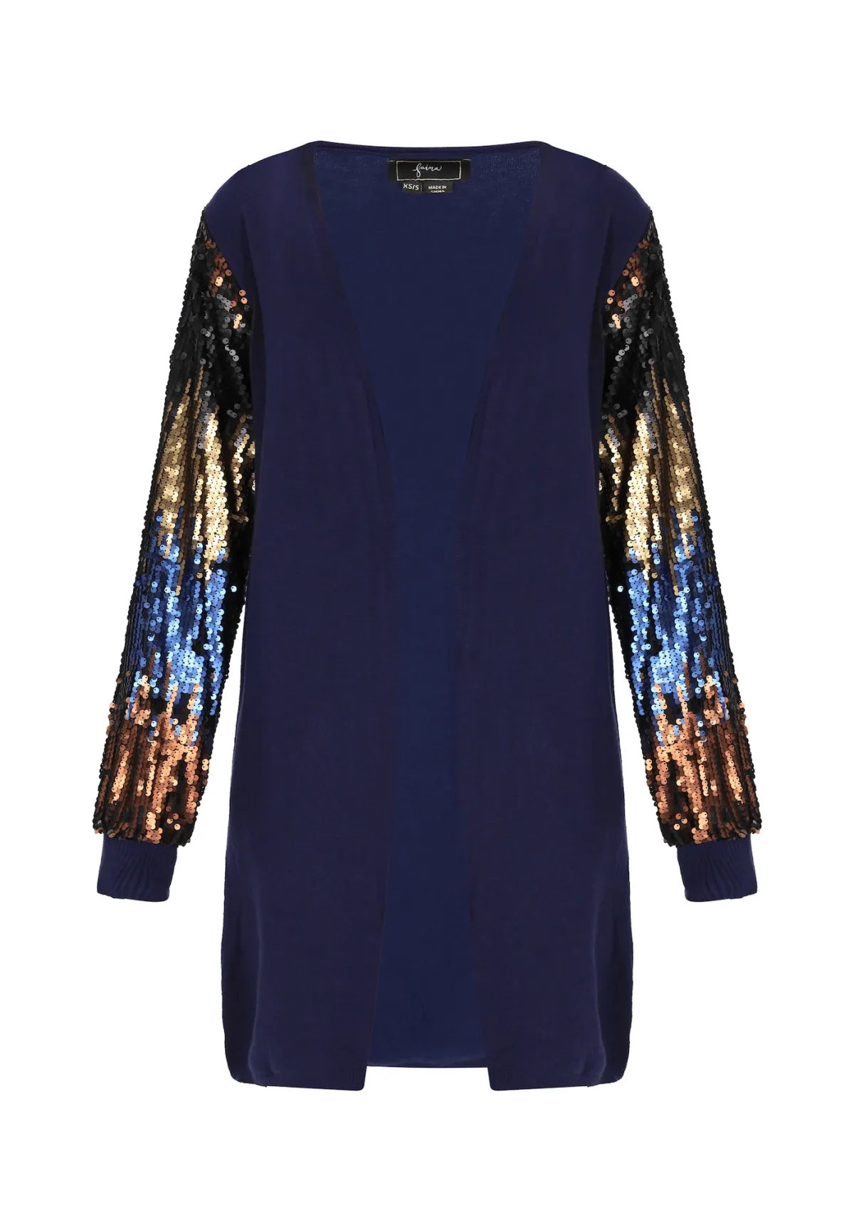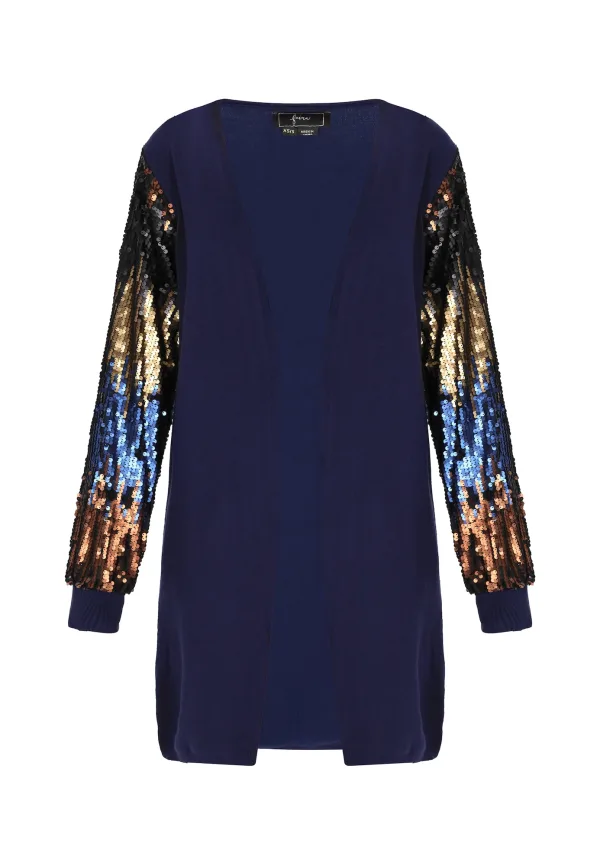 Design: Zonder sluiting; Type sluiting: Open; Materiaal: Knitwear; Details: Pailletten; Extra's: Met textuur; Pasvorm: Normale pasvorm; Armlengte: Lange mouw; Lengte: Lange pasvorm