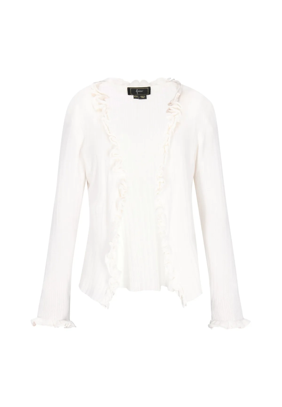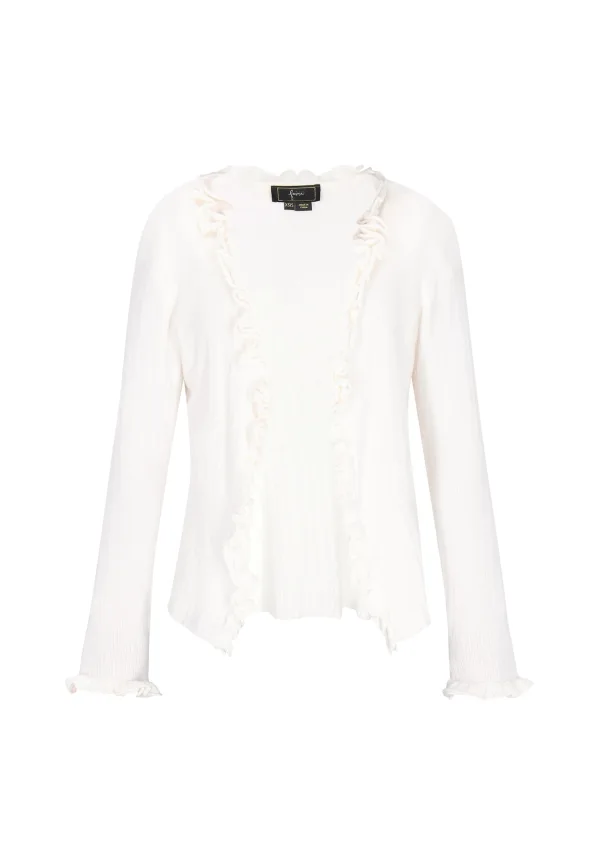 Design: Rechte zoom; Type sluiting: Open; Materiaal: Knitwear; Motief: Effen; Details: Ruches; Extra's: Op staal naden; Pasvorm: Normale pasvorm; Armlengte: Lange mouw; Lengte: Normale lengte