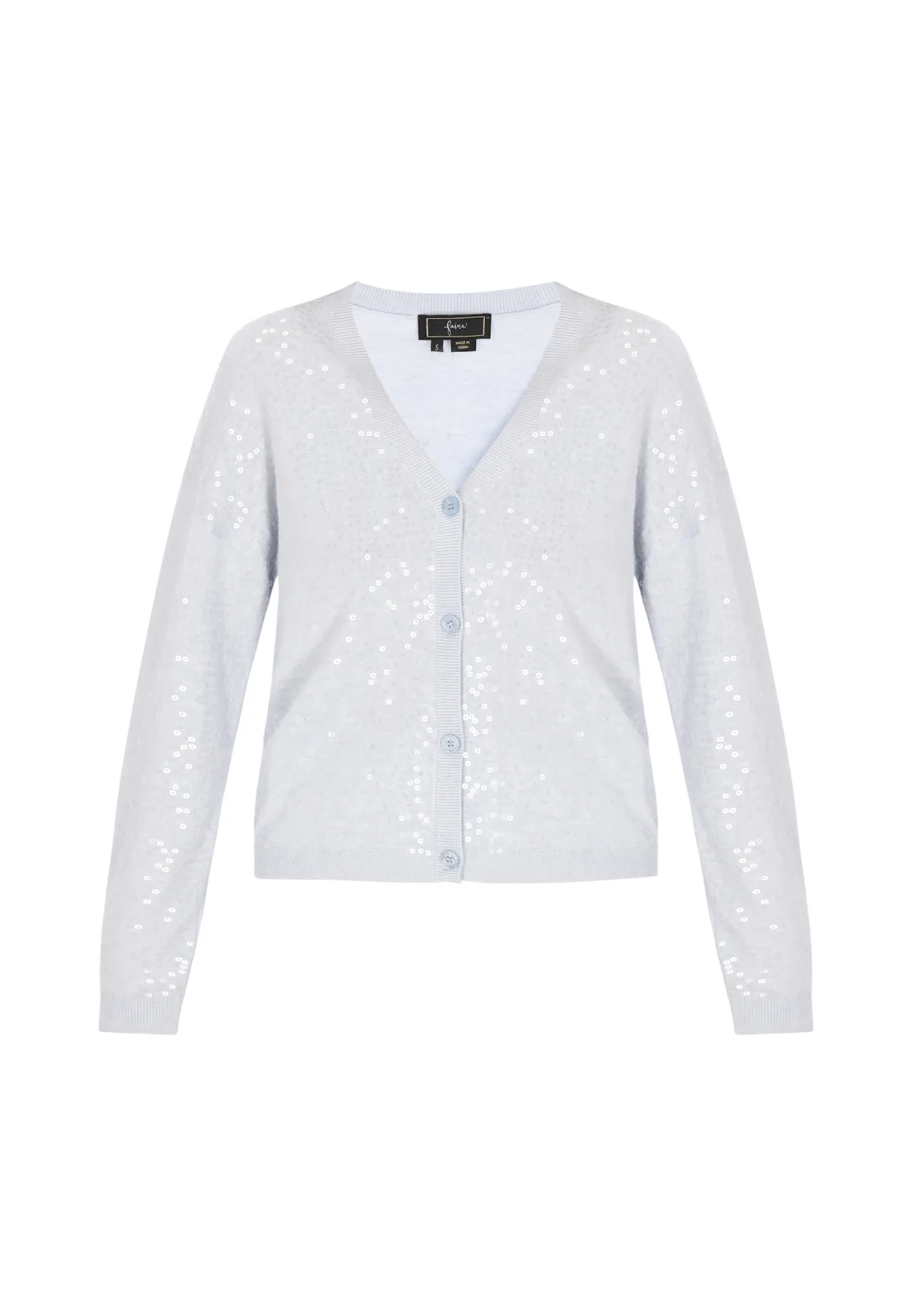 Design: Geribbelde kraag, Knop placket, Geribd ceintuurtje, Knop sluiting; Type sluiting: Knoopsluiting; Materiaal: Knitwear; Halstype: V-hals; Motief: Mélange; Details: Pailletten; Extra's: Label patch/label flag, Voelt zacht aan; Pasvorm: Normale pasvorm; Armlengte: Lange mouw; Lengte: Normale lengte