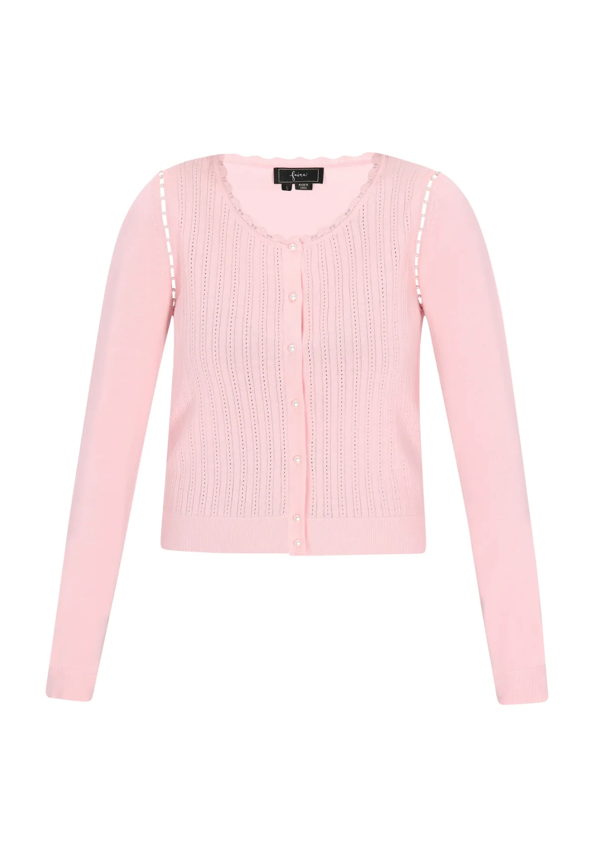 Design: Knop sluiting; Type sluiting: Knoopsluiting; Materiaal: Knitwear; Halstype: Ronde hals; Motief: Effen; Details: Mesh, Parels; Extra's: Op staal naden; Pasvorm: Normale pasvorm; Armlengte: Lange mouw; Lengte: Normale lengte