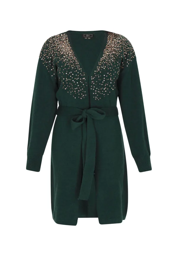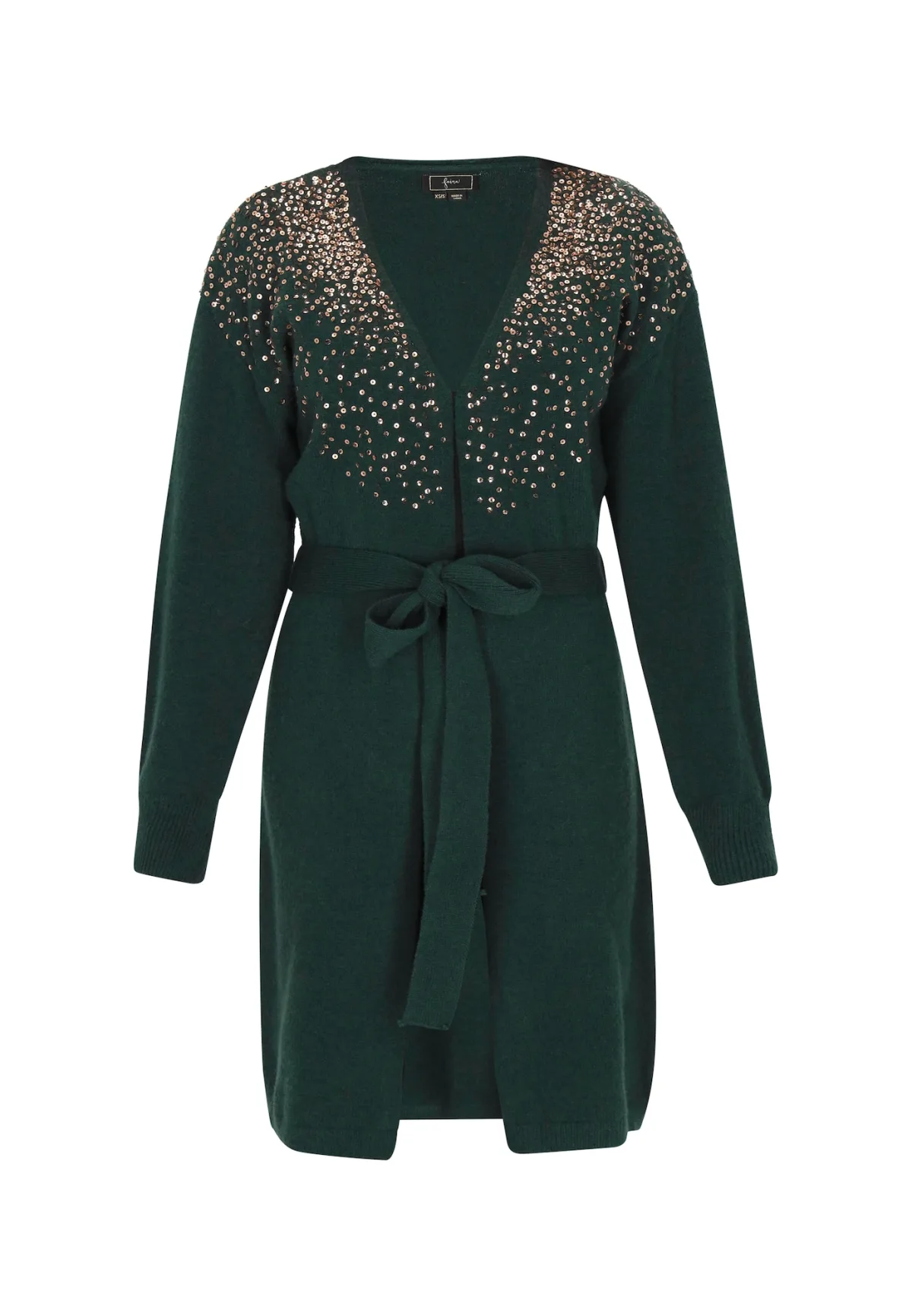 Design: Met band/snoer; Materiaal: Knitwear; Halstype: V-hals; Motief: Effen; Details: Pailletten; Extra's: Glinsterend; Pasvorm: Normale pasvorm; Armlengte: Lange mouw; Lengte: Lange pasvorm