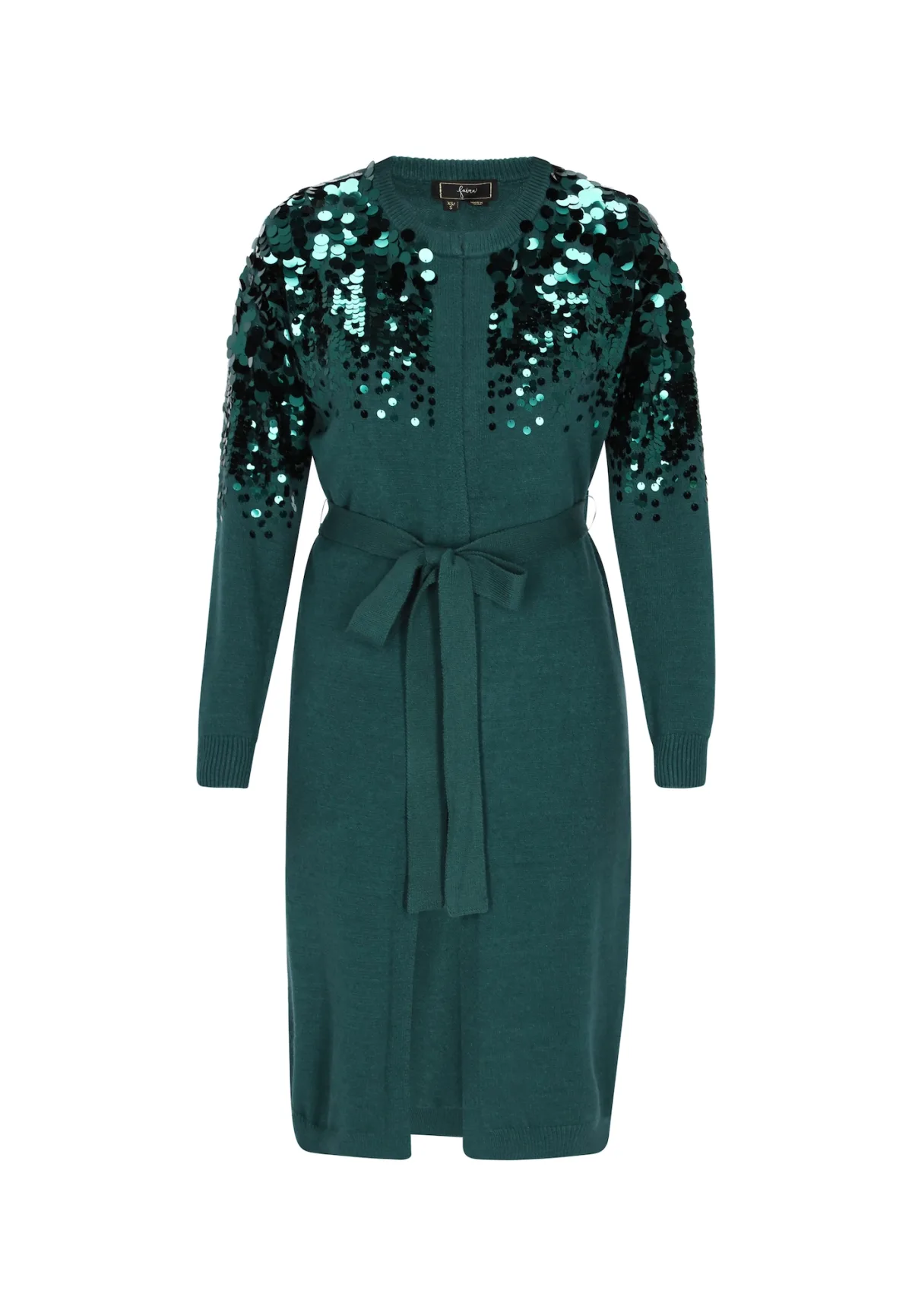 Design: Met band/snoer, Tailleriem; Type sluiting: Riemsluiting; Materiaal: Knitwear; Halstype: Ronde hals; Motief: Effen; Details: Pailletten; Extra's: Label patch/label flag, Op staal naden; Pasvorm: Normale pasvorm; Armlengte: Lange mouw; Lengte: Lange pasvorm