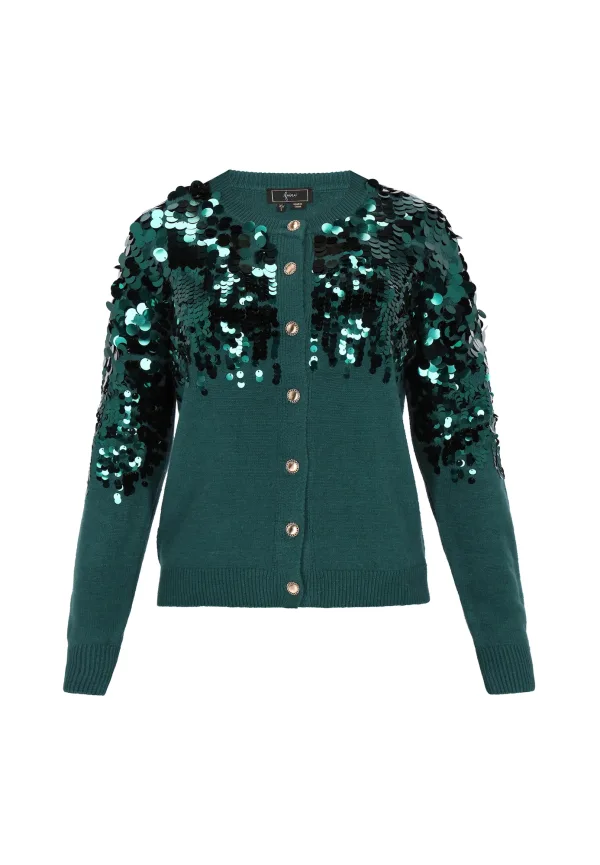 Design: Geribd ceintuurtje; Type sluiting: Knoopsluiting; Materiaal: Knitwear; Halstype: Ronde hals; Motief: Effen; Details: Pailletten; Extra's: Fully fashioned; Pasvorm: Normale pasvorm; Armlengte: Lange mouw; Lengte: Normale lengte