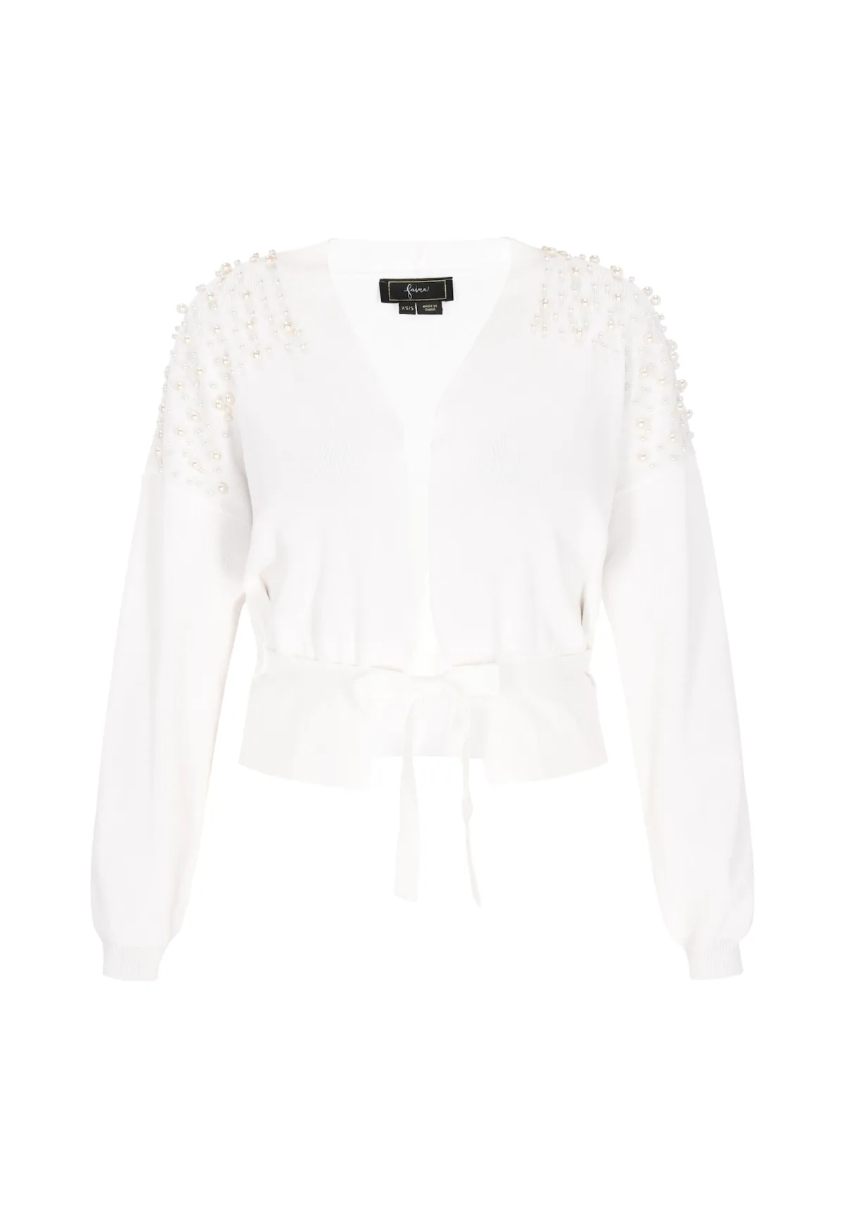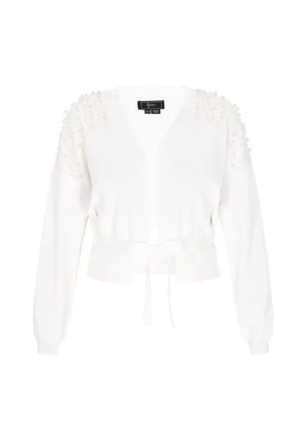 Design: Gevoerde zoom/rand, Overcut schouder, Om te knopen/binden; Materiaal: Knitwear; Motief: Effen; Details: Parels; Extra's: Op staal naden, Met kristalparels/glazen parels; Pasvorm: Normale pasvorm; Armlengte: Lange mouw; Lengte: Normale lengte