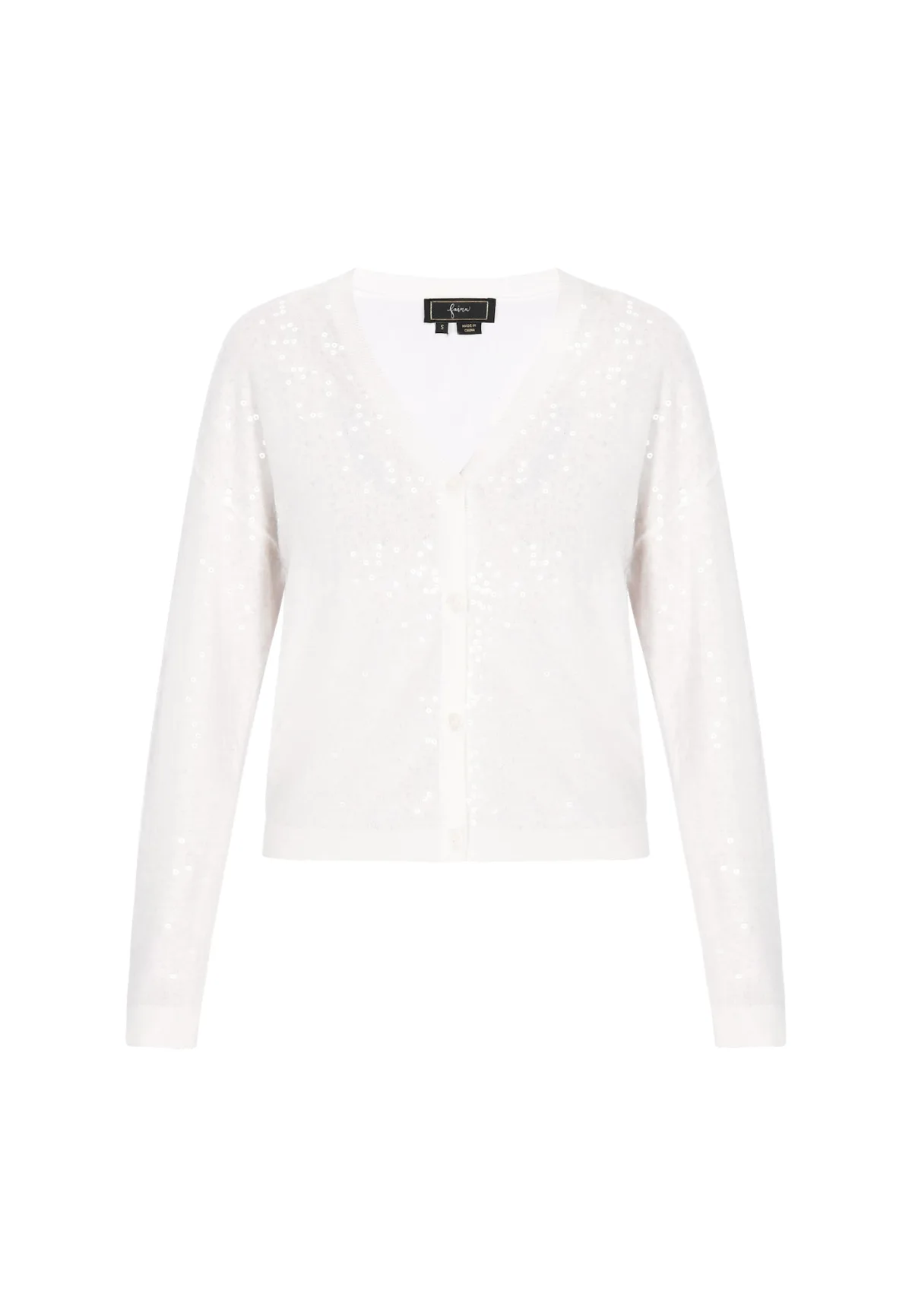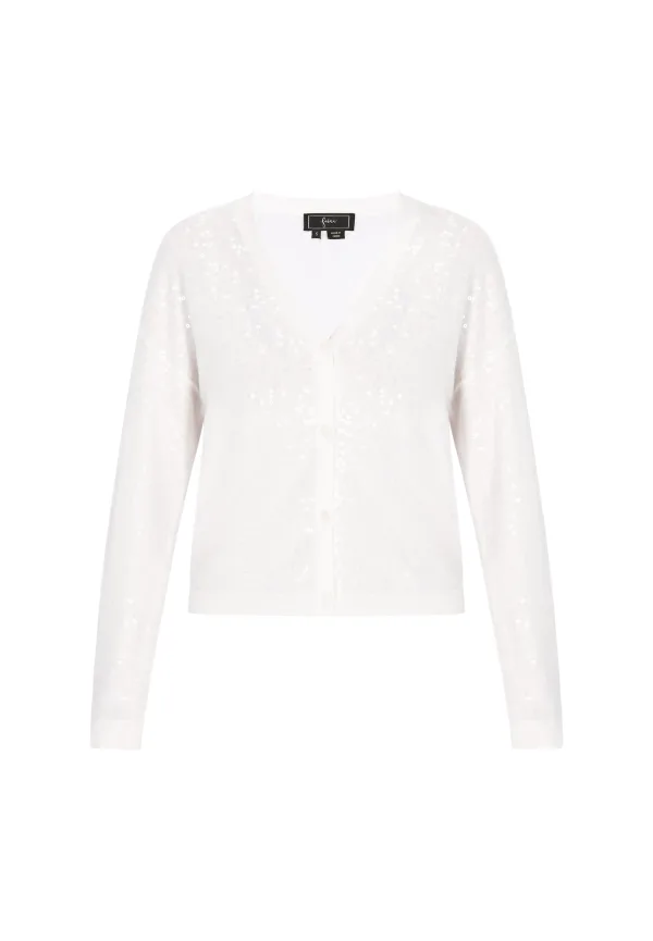 Design: Geribbelde kraag, Knop placket, Knop sluiting; Type sluiting: Knoopsluiting; Materiaal: Knitwear; Halstype: V-hals; Motief: Mélange; Details: Pailletten; Extra's: Voelt zacht aan; Pasvorm: Normale pasvorm; Armlengte: Lange mouw; Lengte: Normale lengte