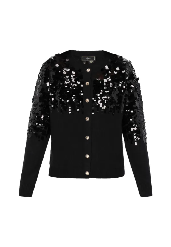 Design: Knop placket, Geribd ceintuurtje; Type sluiting: Knoopsluiting; Materiaal: Knitwear; Halstype: Ronde hals; Motief: Effen; Details: Pailletten; Extra's: Glitterend; Pasvorm: Normale pasvorm; Armlengte: Lange mouw; Lengte: Normale lengte