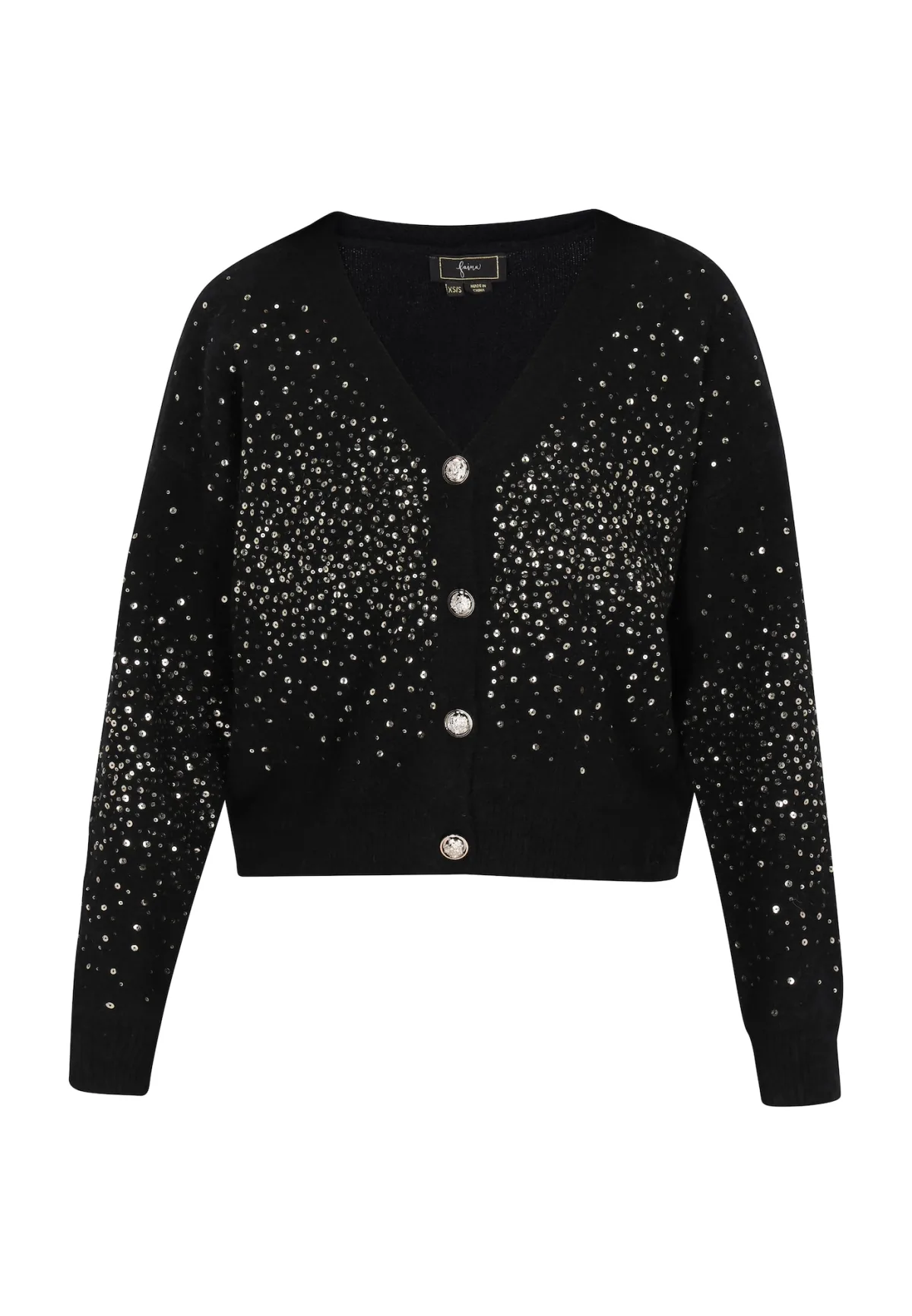 Design: Gevoerde zoom/rand; Type sluiting: Knoopsluiting; Materiaal: Knitwear; Halstype: V-hals; Details: Pailletten; Extra's: Applicaties; Pasvorm: Normale pasvorm; Armlengte: Lange mouw; Lengte: Normale lengte