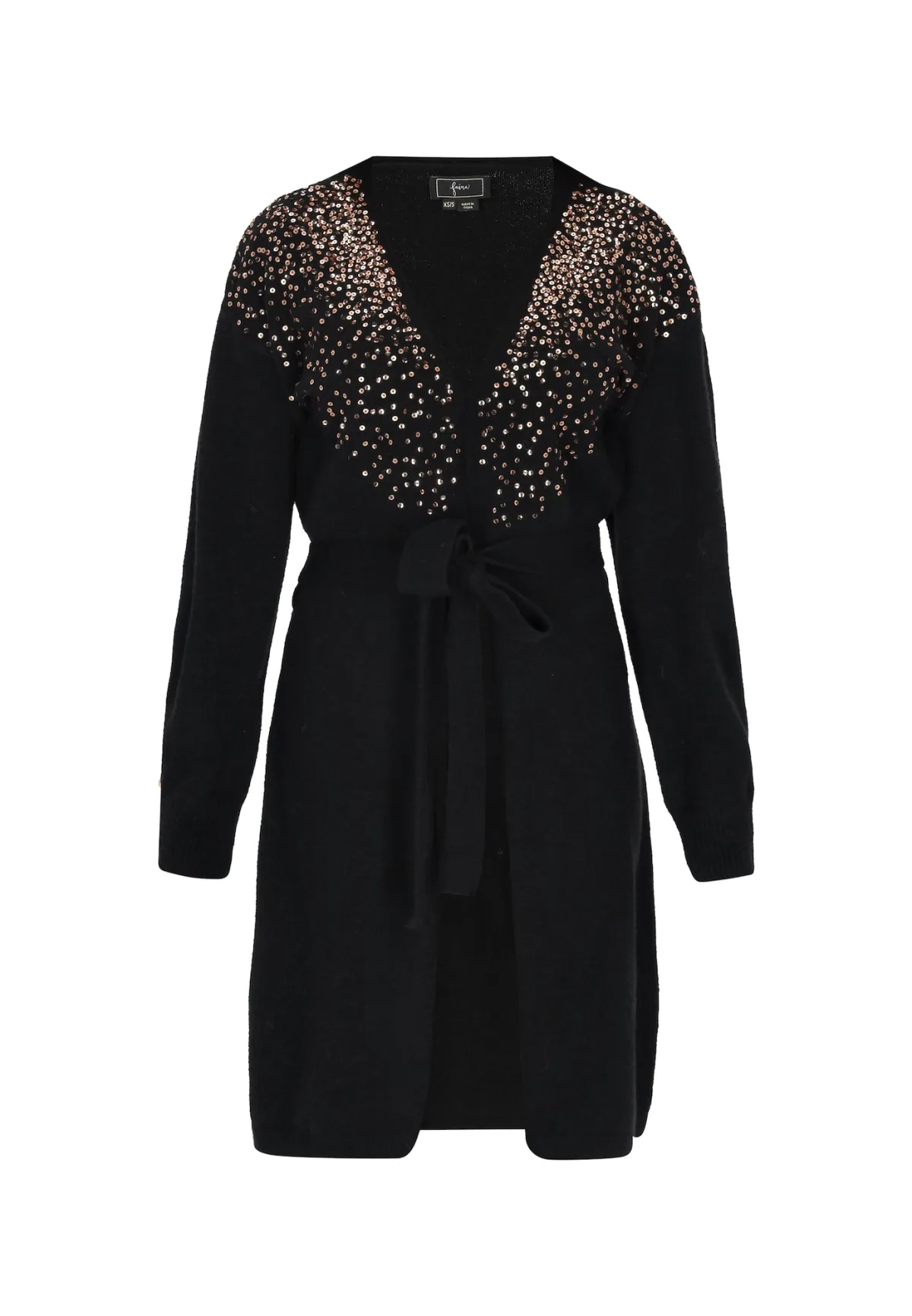 Design: A-lijn, Tailleriem; Materiaal: Knitwear; Halstype: V-hals; Motief: Effen; Details: Pailletten; Extra's: Glinsterend, Voelt zacht aan; Pasvorm: Normale pasvorm; Armlengte: Lange mouw; Lengte: Lange pasvorm
