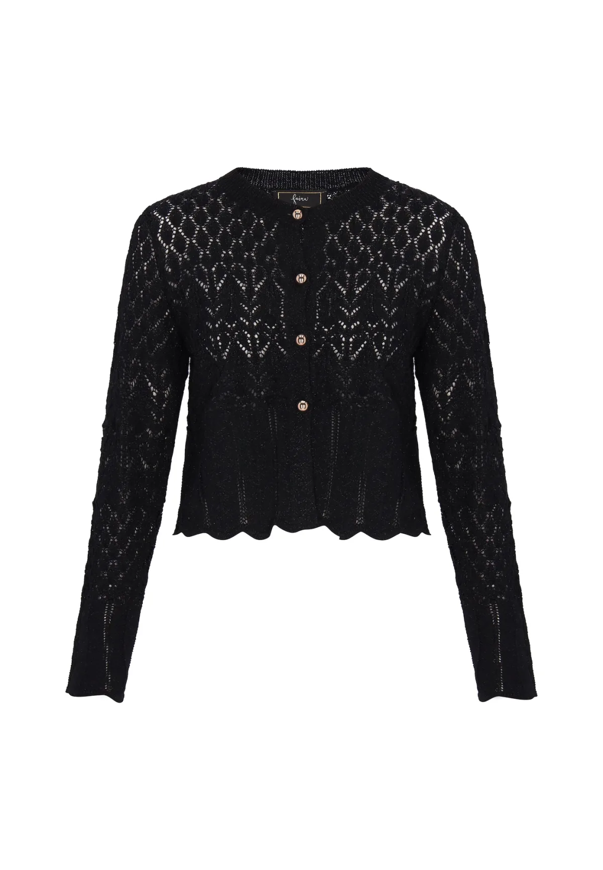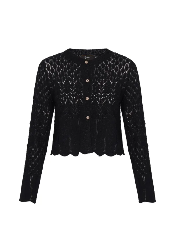 Design: Extra lange mouwen, Knop sluiting; Type sluiting: Knoopsluiting; Materiaal: Knitwear; Halstype: Ronde hals; Motief: Effen; Details: Mesh; Extra's: Op staal naden; Pasvorm: Normale pasvorm; Armlengte: Lange mouw; Lengte: Normale lengte