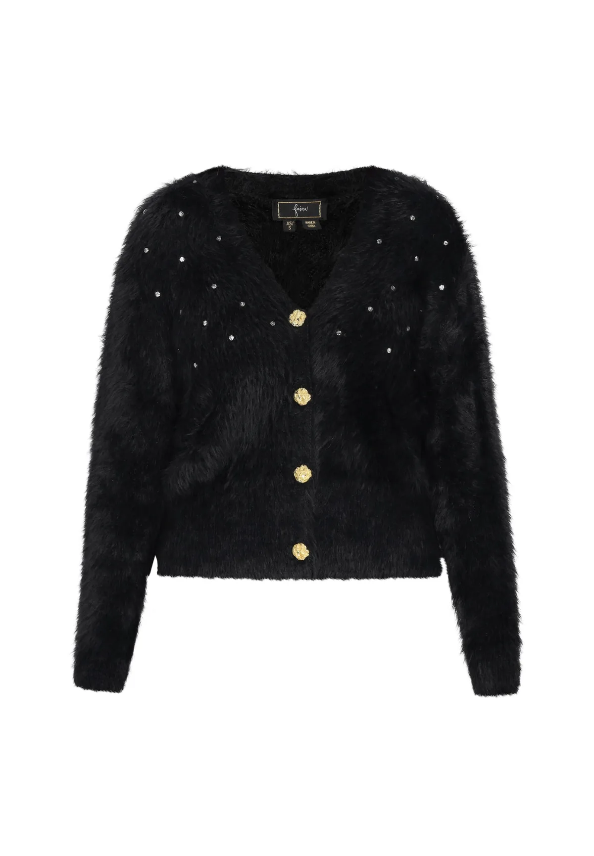 Design: Knop placket, Geribd ceintuurtje; Type sluiting: Knoopsluiting; Materiaal: Knitwear; Halstype: V-hals; Motief: Effen; Details: Sierstenen; Extra's: Applicaties; Pasvorm: Normale pasvorm; Armlengte: Lange mouw; Lengte: Normale lengte