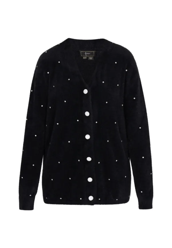 Design: Gevoerde zoom/rand, Knop placket; Type sluiting: Knoopsluiting; Halstype: V-hals; Motief: Effen; Details: Pailletten; Extra’s: Op staal naden; Pasvorm: Normale pasvorm; Armlengte: Lange mouw; Lengte: Lange pasvorm