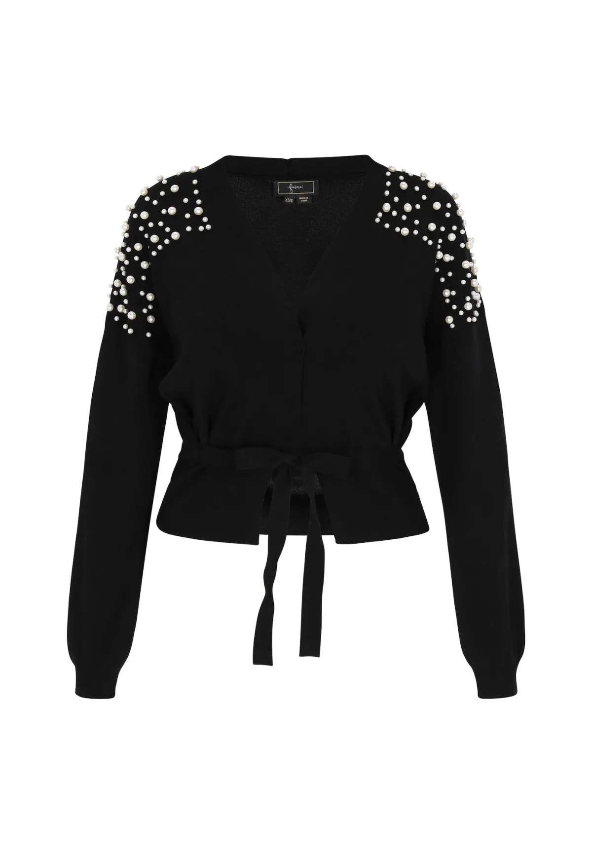 Design: Gevoerde zoom/rand, Overcut schouder, Om te knopen/binden; Materiaal: Knitwear; Motief: Effen; Details: Parels; Extra’s: Applicaties, Op staal naden; Pasvorm: Normale pasvorm; Armlengte: Lange mouw; Lengte: Normale lengte