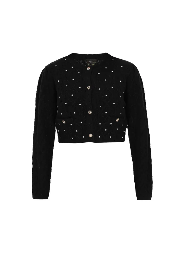 Design: Gevoerde zoom/rand, Knop placket, Pofmouwen; Type sluiting: Knoopsluiting; Materiaal: Knitwear; Halstype: Ronde hals; Motief: Effen; Details: Sierstenen; Extra's: All-over patroon; Pasvorm: Slanke pasvorm; Armlengte: Lange mouw; Lengte: Korte pasvorm