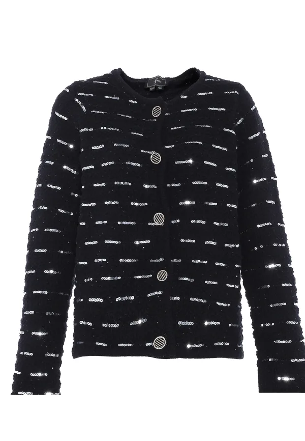 faina Gebreid vest zwart / zilver Prijzen