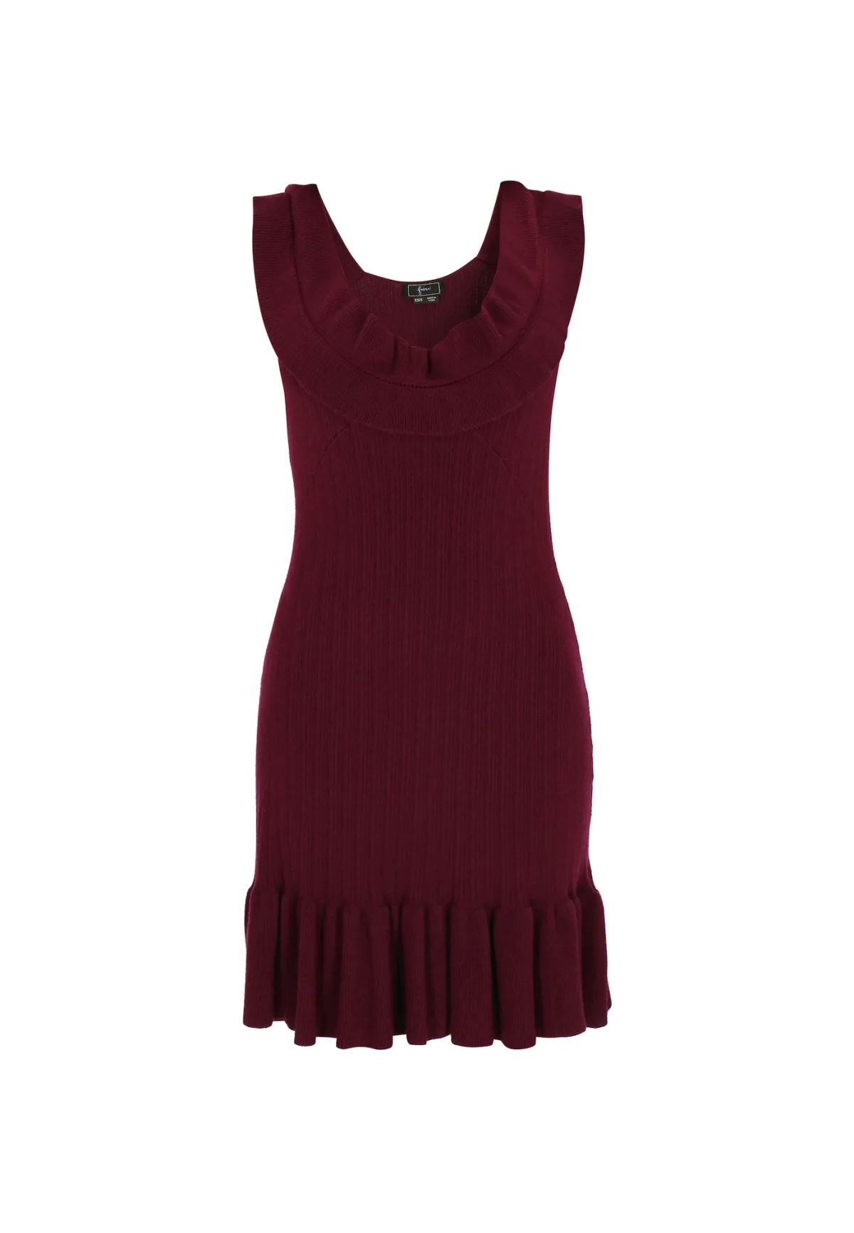 Design: Geribbeld gebreid, Diepe snit/decolleté; Type sluiting: Slip; Materiaal: Knitwear; Motief: Effen; Details: Ruches; Extra's: Fully fashioned; Lengte: Kort/mini; Pasvorm: Slanke pasvorm; Armlengte: Mouwloos