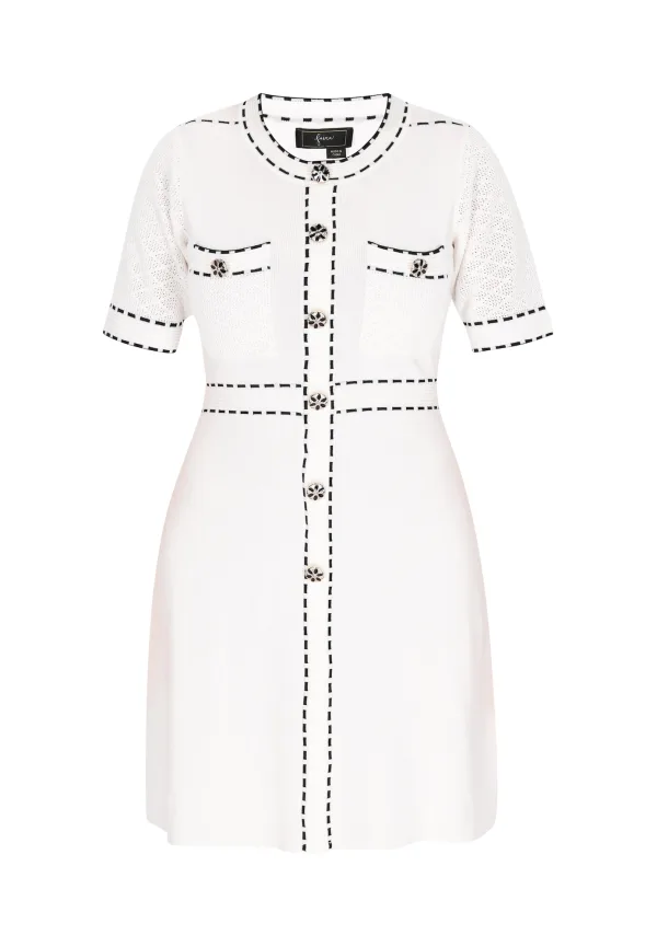 faina Gebreide jurk ‘Fashion Look’ zwart / offwhite